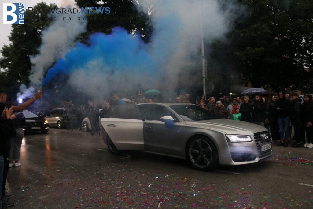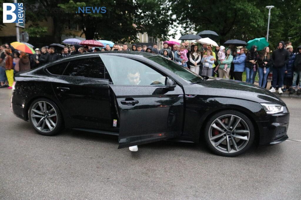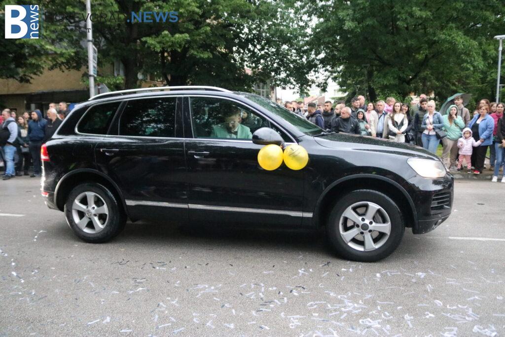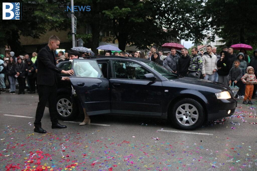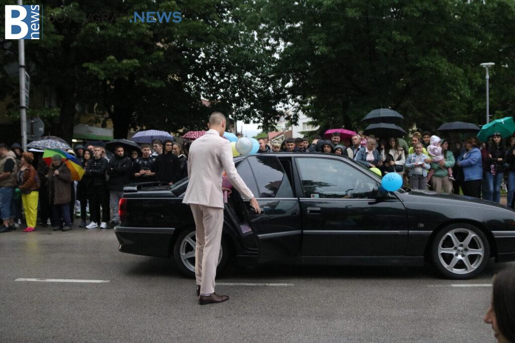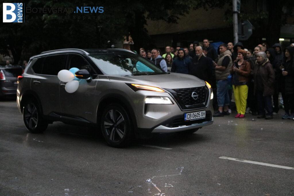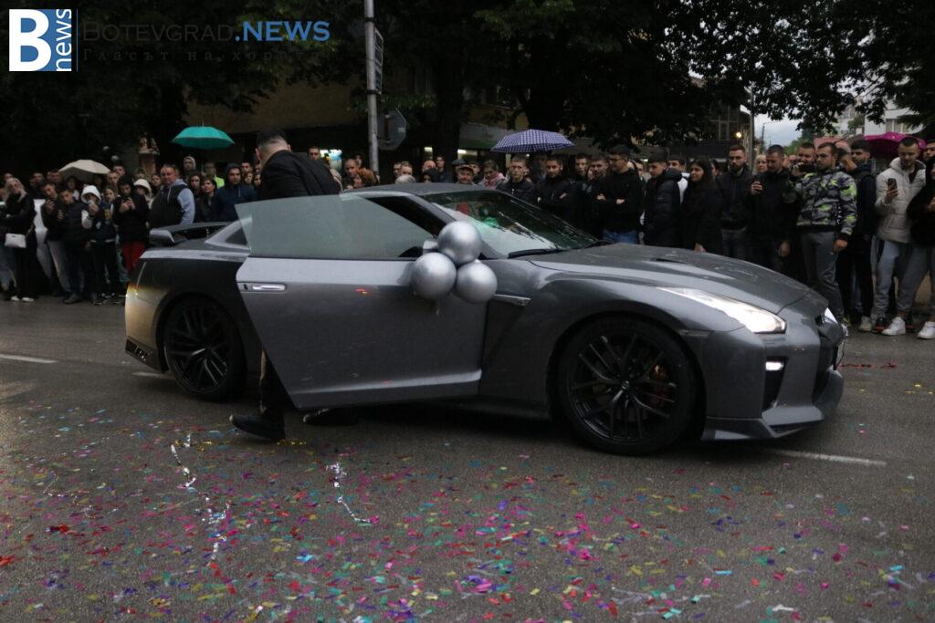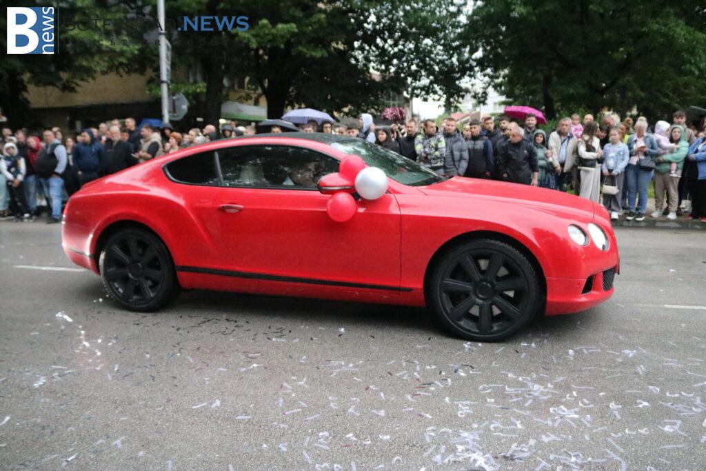 Най-голямата атракция на вечерта безспорно бяха учениците от 12 „Б“ клас, водени от своя обичан класен ръководител, г-н Филип Зуберски. Те пристигнаха не с лъскави коли, а с училищен автобус – жест, който предизвика бурни аплодисменти, усмивки и искрено възхищение. Техният оригинален избор се превърна в символ на духа и сплотеността на випуска – различен, креативен и незабравим.