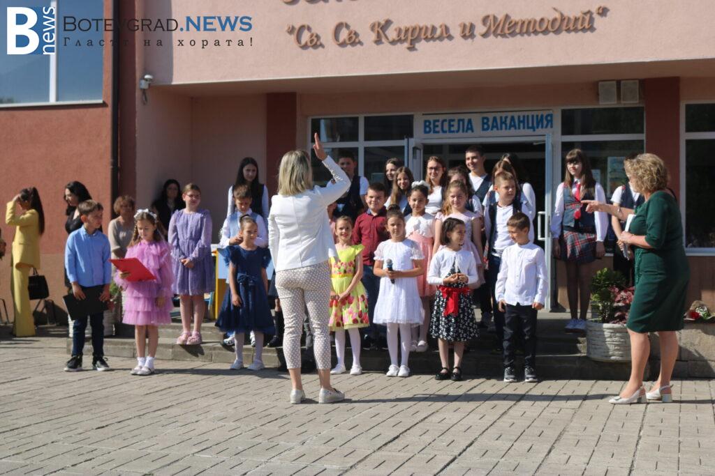 С тържествена церемония в двора на училището днес учениците от 1. до 3. клас в ОУ „Св. Св. Кирил и Методий“ – Ботевград изпратиха учебната 2024/2025 година. Под слънчевото небе, в присъствието на учители, родители и гости, децата се включиха в празнична програма с песни, изпълнени от училищния хор, мажоретни изпълнения и народни танци.