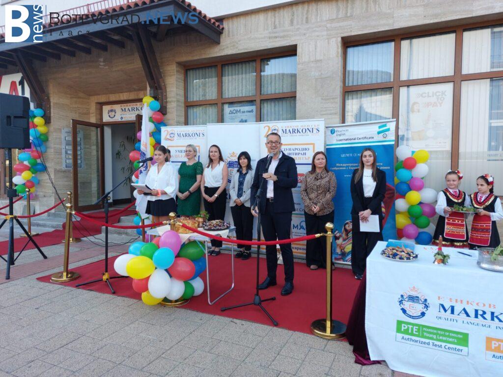 „Стартираме новата учебна година с вяра, че академичните успехи на нашите обучавани ще се множат, с надеждата, че екипът ни ще бъде още по-полезен на нашите обучавани и с любпвта на мисията на „Марконис“, а тя е качествено езиково обучение. В тази мисия ние сме един отбор – нашите обучавани и Вие родители , които имате доверие в „Маркони“ и най-прекрасния екип от професионалисти“. С тези думи Управителят на Езиковия център даде старт на официалната церемония.