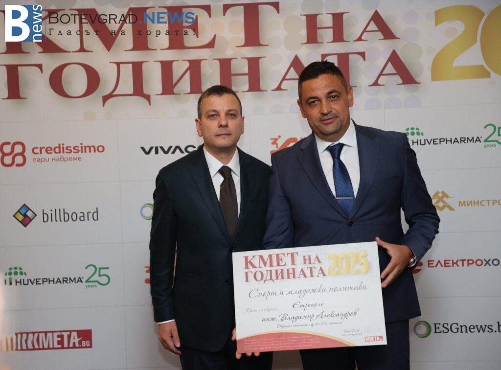 „За мен е чест за втора поредна година да бъда удостоен с награда от националния конкурс „Кмет на годината“. Една награда в сферата на спорта за мен е изключителна чест, защото за нас е важно младото поколение да спортува и да бъде здраво. Тази награда нямаше да е възможна без всички партньори, които Община Етрополе има, за което им благодаря“, заяви по време на тържествената церемония кметът инж. Владимир Александров, по време на церемонияа по награждаване в националния конкурс „Кмет на годината 2025 г.”