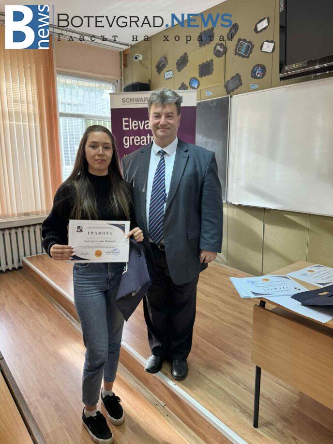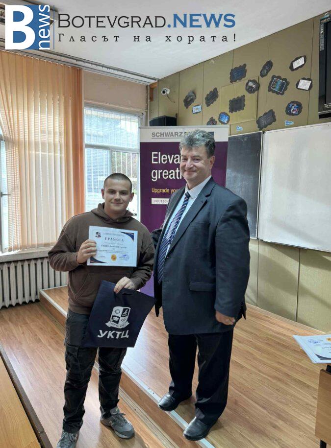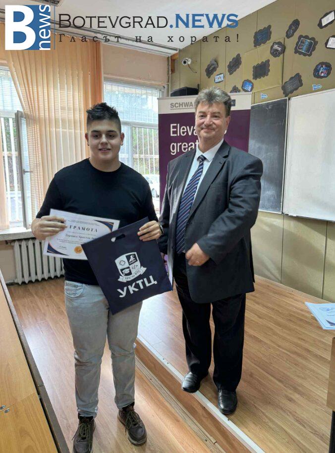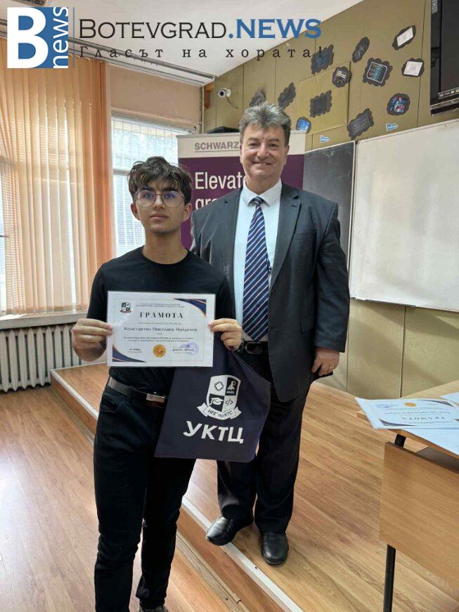 Наградени бяха изявени ученици в НПГ по КТС – гр. Правец за високи резултати и заслужени отличия на технически състезания и изложения