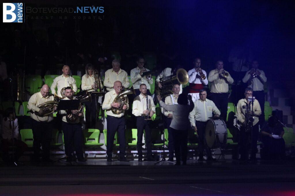 Залата беше изпълнена до краен предел, а спектакълът започна с тържествено музикално въведение, изпълнено от Общинския духов оркестър. Към него се присъедини и Младежкият духов оркестър и заедно поставиха силно музикално начало, зареждайки присъстващите с енергия и патриотичен дух.