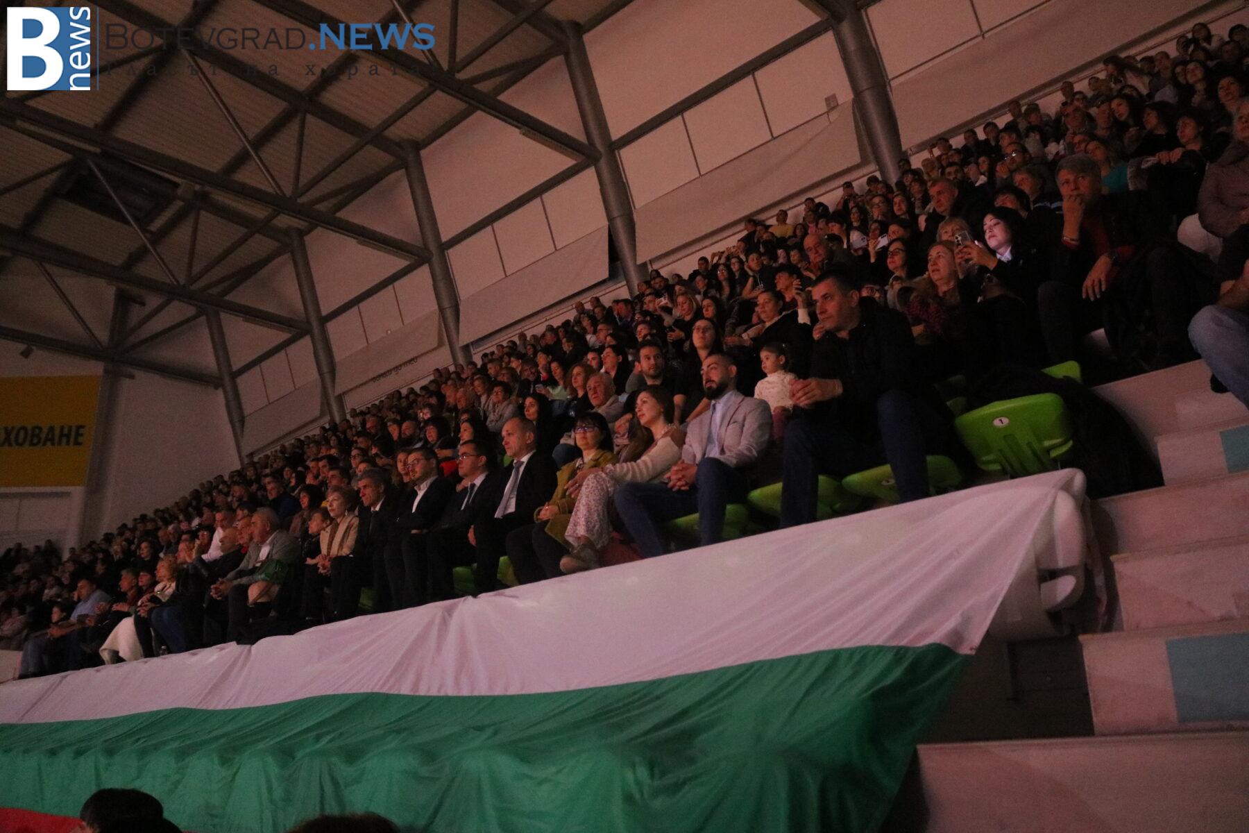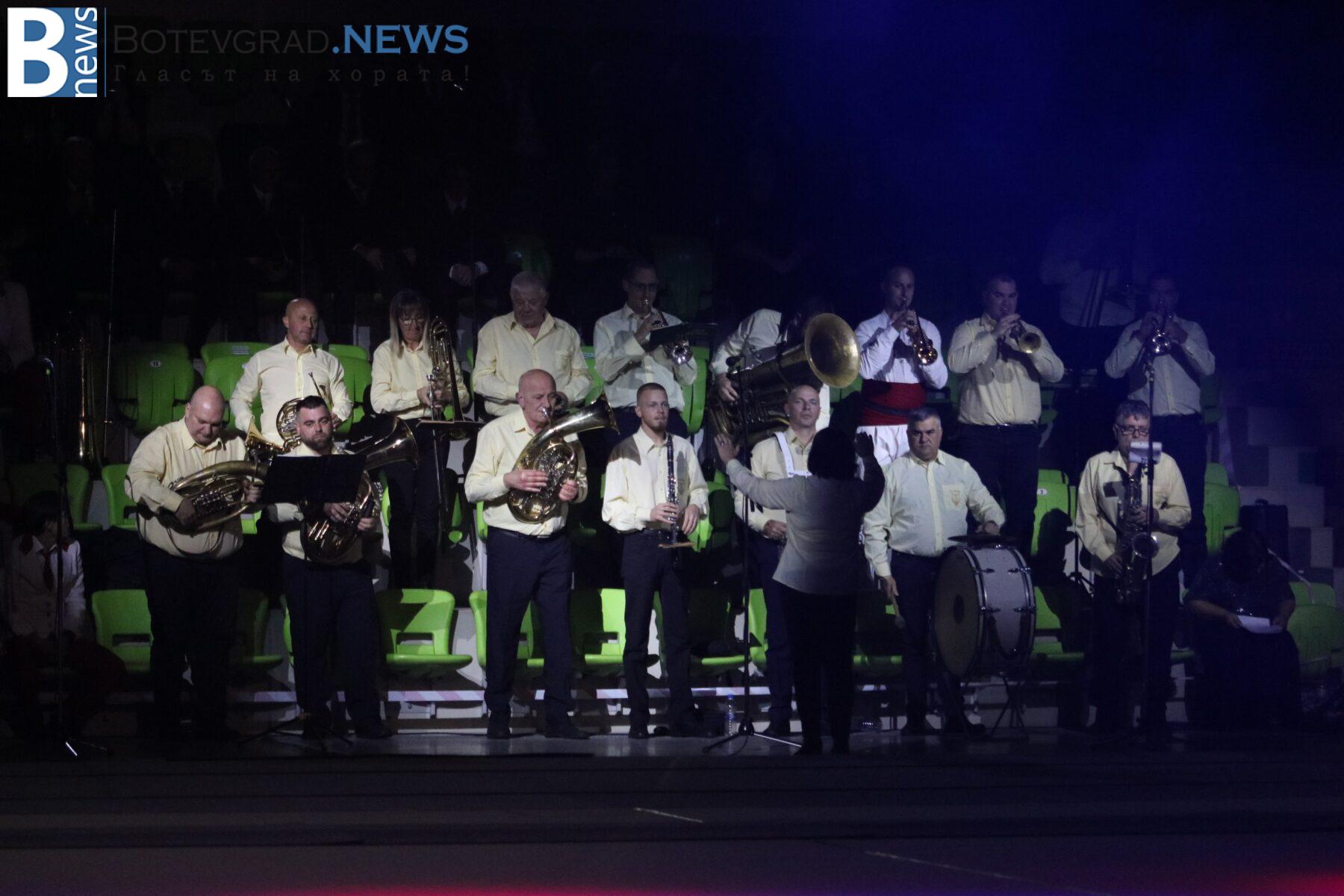 Залата беше изпълнена до краен предел, а спектакълът започна с тържествено музикално въведение, изпълнено от Общинския духов оркестър. Към него се присъедини и Младежкият духов оркестър и заедно поставиха силно музикално начало, зареждайки присъстващите с енергия и патриотичен дух.