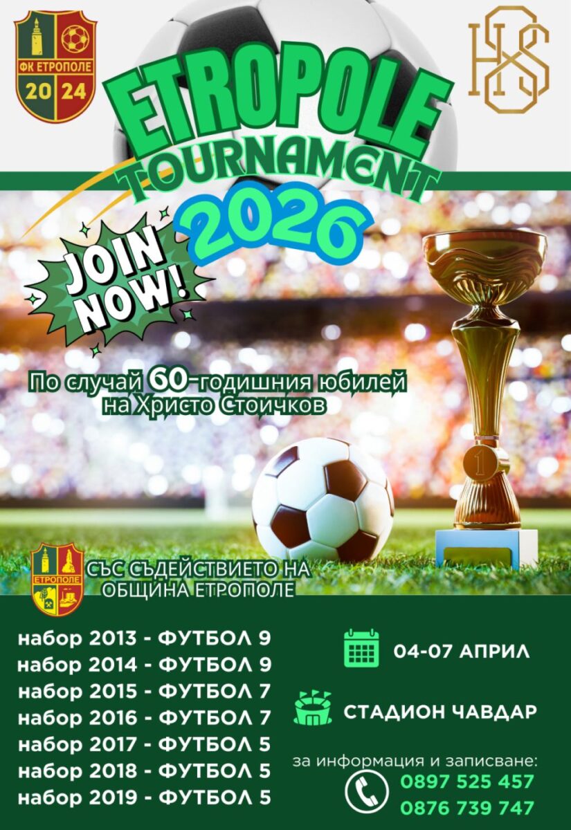 Etropole Tournament 2026 не е просто събитие – това е история, емоция илична среща с Христо Стоичков, който е почетен гражданин на гр.