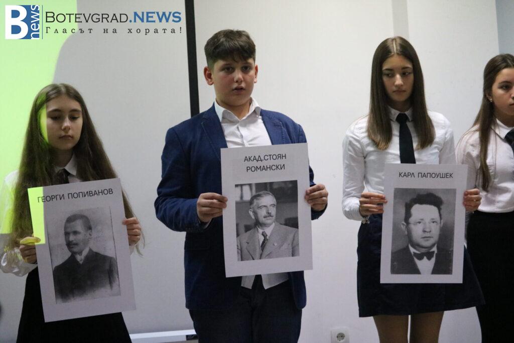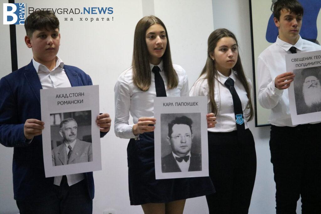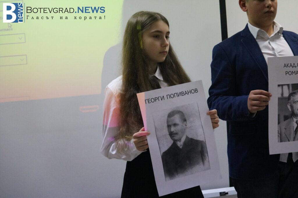 Учениците припомниха делата и заслугите на вдъхновяващи личности, оставили трайна диря в историята на града и страната ни, сред които Георги Попиванов, акад. Стоян Романски, Карло Папоушек, свещеник Георги Попдимитров, Дико Илиев, както и емблематичните събития, с които се свързва името на Ботевград – автобусите „Чавдар“ и Завода за полупроводници.