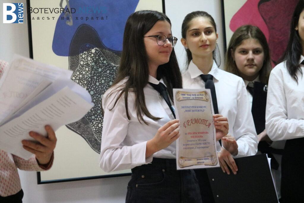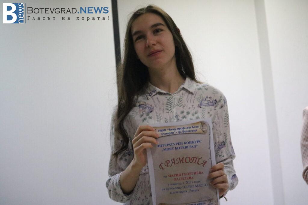 В категория „Разказ“ бяха отличени дванадесетокласничките Мария Василева – първо място, и Александра Хубанова – второ място.