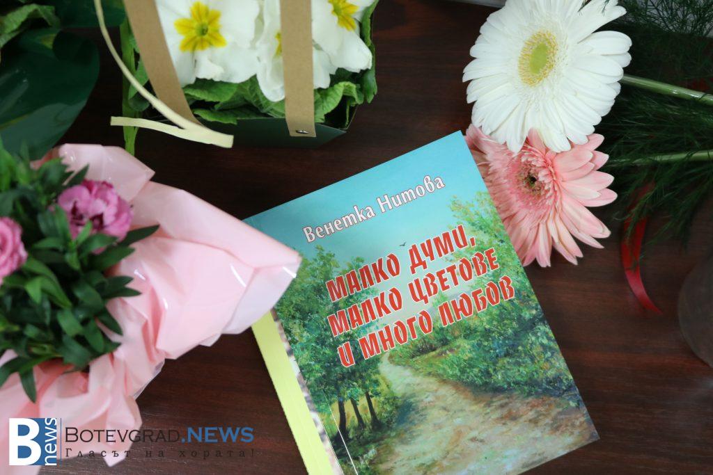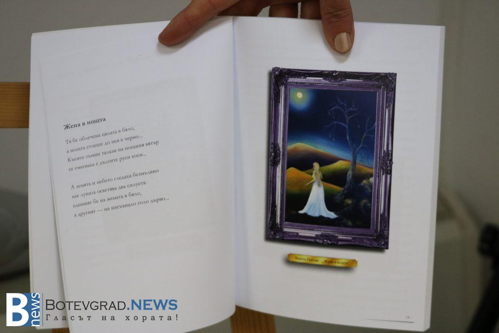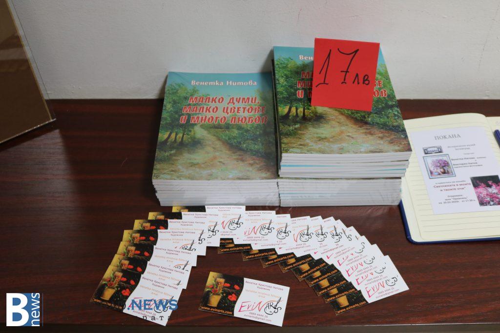 „Много ми е приятно, че в крайна сметка тази изложба стана факт! Исках да се състои миналата година, защото тогава се навършиха 20 години от моята първа самостоятелна изложба. По този повод издадох и моята малка книжка със стихове и снимки на картини. Поради ред причини във времето изложбата не се състоя тогава, но пък съм още по-щастлива, че се случва, защото заедно с картините ми може да разгледаме и първите фотографии на моя син!“, каза г-жа Нитова. Тя получи поздравления от Литературния клуб на Ботевград за премиерата на книгата си „Малко думи, малко цветове и много любов!“.