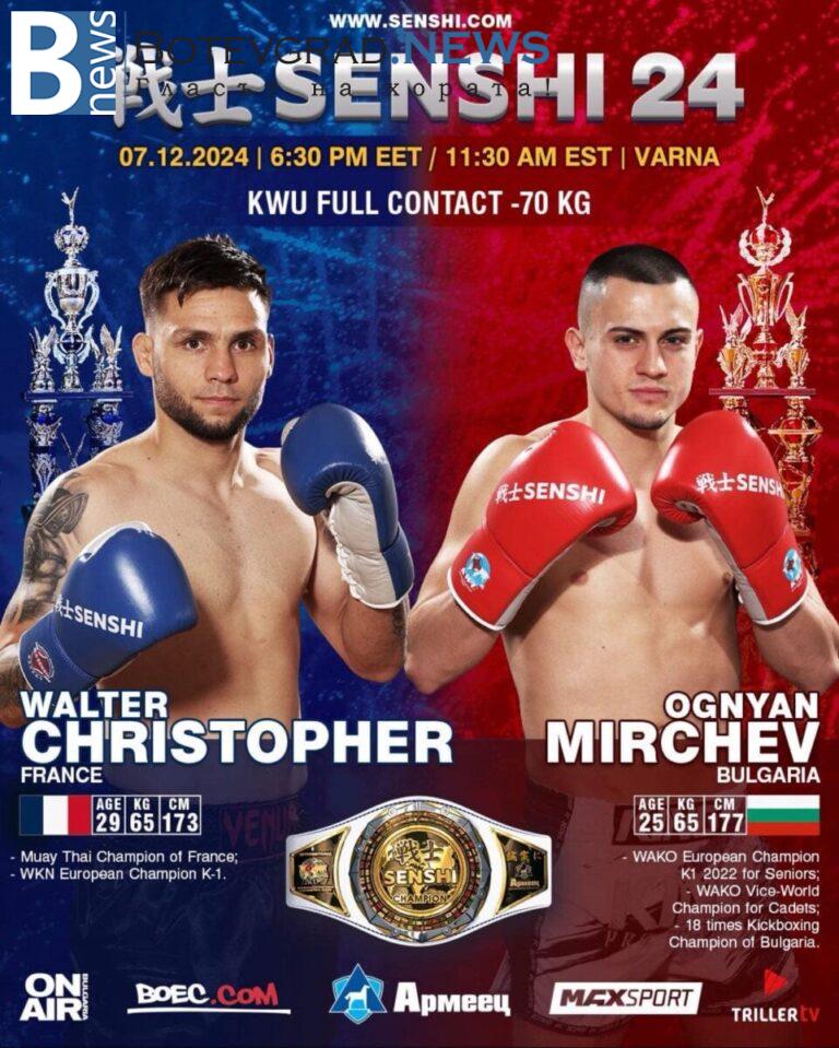 Професионалният кикбоксьор Огнян Мирчев излиза за 13-тия си професионален мач на ринга на международната бойна верига SENSHI 24. 25-годишният ботвградчанин...