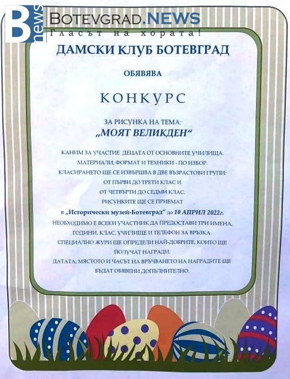 Дамски клуб "Инър Уийл" Ботевград , в партньорство с Исторически музей Ботевград, канят за участие децата от основните училища в...