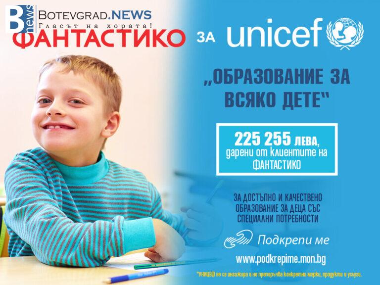 225 255 лева бяха дарени в подкрепа на кампанията „Образование за всяко дете“ от клиентите на всички 45 супермаркета ФАНТАСТИКО...