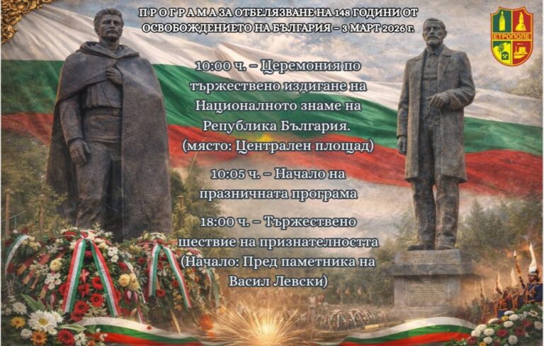 На 3 март 2026 г. Община Етрополе ще отбележи тържествено 148-ата годишнина от Освобождението на България – една от най-светлите...