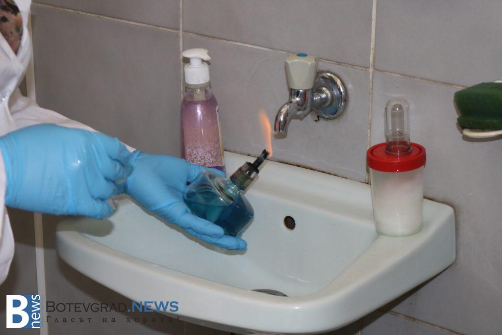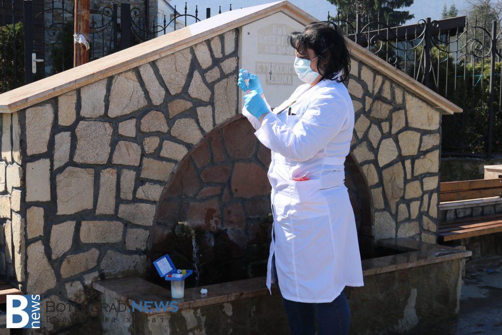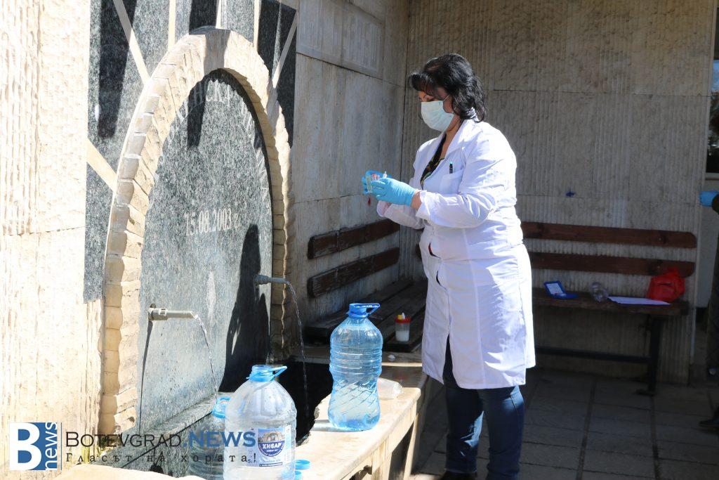 Лаборант на РЗИ извърши, при строги мерки на хигиена, дезинфекция на всяка една чешма със спирт, след това пристъпи към обгоряване със спиртна лампа. Специалистите оставиха водата да се източи от водоизточника 10 мин. След това бе взета проба и бе напълнен стерилния контейнер, при което се определят стойностите на остатъчния свободен хлор. Най-високи стойности на остатъчна хлор лаборантите отчетоха във водата от автогарата, където се захранва вода от подмнените тръби на централния водопреносен пръстен.