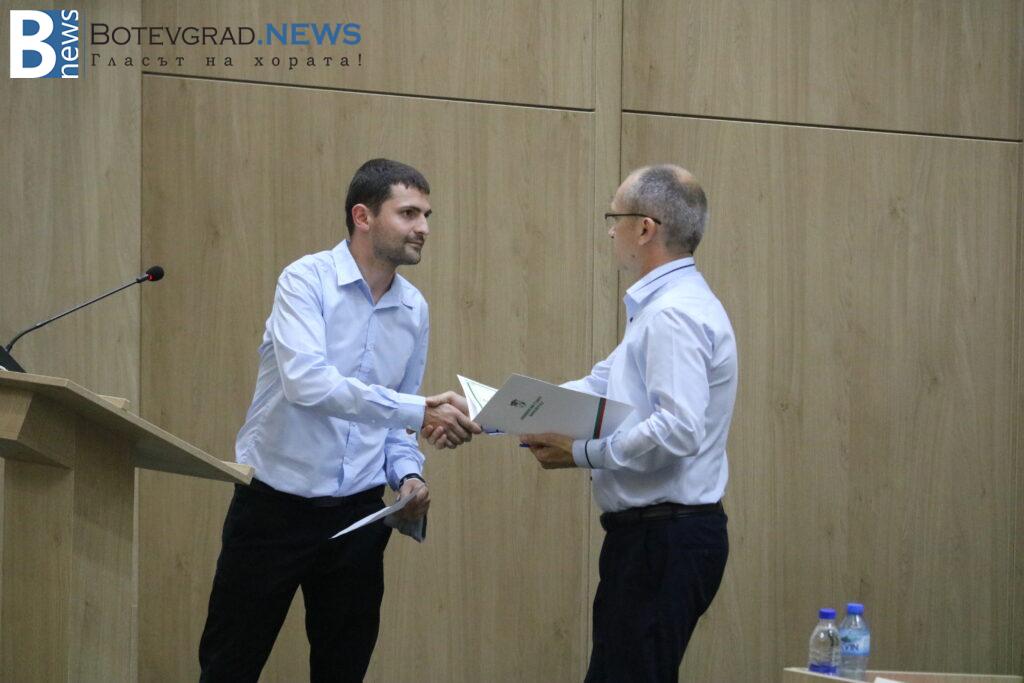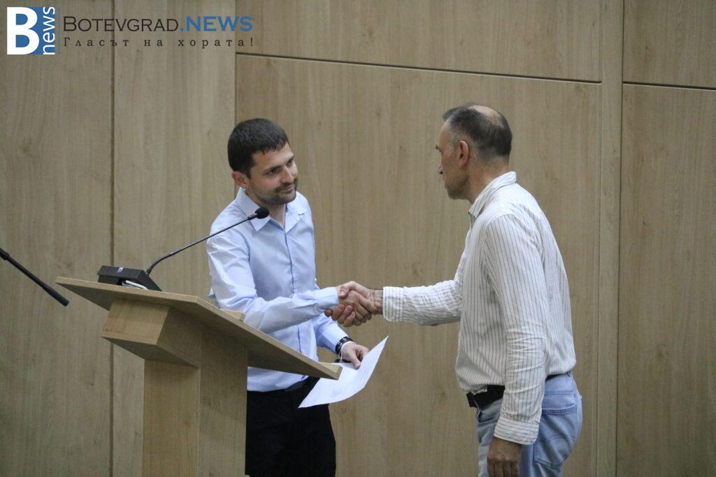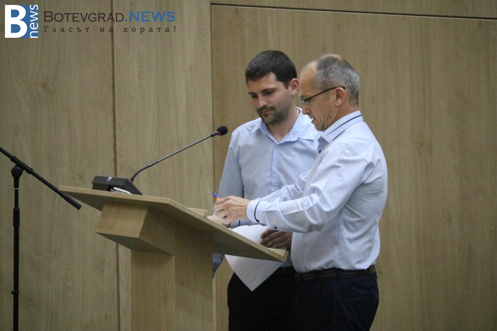 Днешното редовно заседание на Общински съвет Ботевград започна с встъпване в длъжност на новия общински съветник Петър Петров от МК ДИБО. Той става общински съветник на мястото на починалия Георги Георгиев. Петров положи клетва, като общински съветник, повтаряйки клетвените думи след председателя на Общински съвет Ботевград, д-р Илин Черняшки. Христо Якимов, зам. председател на Общинската избирателна комисия, му връчи удостоверение от ОИК. Преди това общинските съветници почетоха паметта на Георгиев със ставане на крака и едноминутно мълчание.