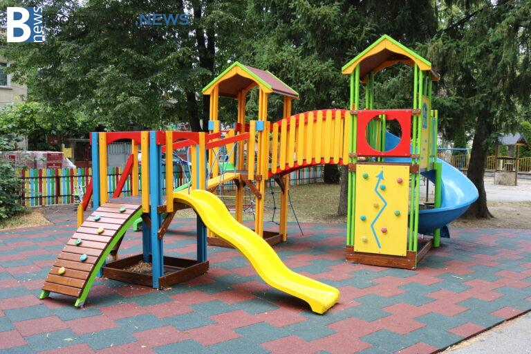 Съоръженията и ударополглъщаща настилка на обновената детска площадка зад новата църква в Ботевград - "Успение на пресвета Богородица" вече са...