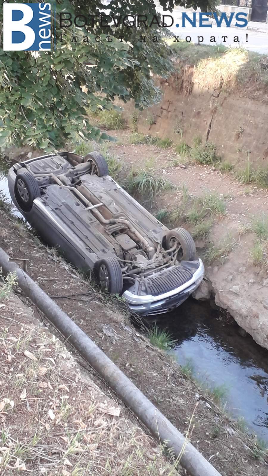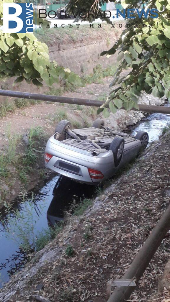 Инцидентът е станал тази нощ в района на Данъчна служба – Ботевград. Мерцедесът, който в момента е без регистрационни табели, вероятно се е движил в насрещното платно, след което по неизяснени причини се е обърнал по таван в коритото на Стара река. За сега не е е ясно дали има пострадали при произшествието.