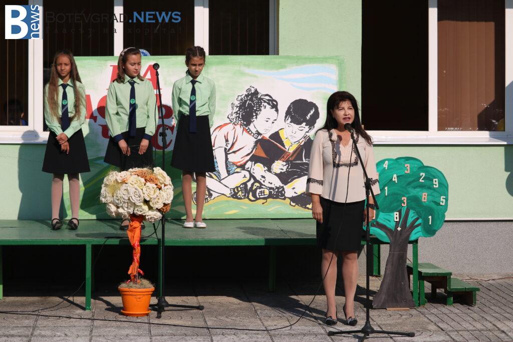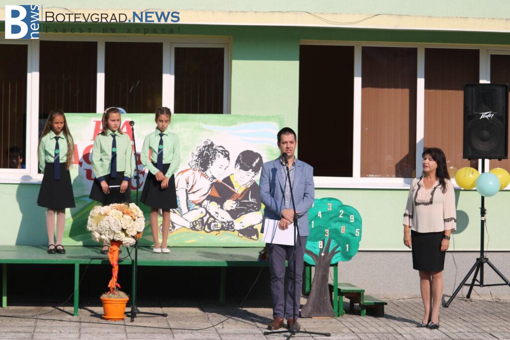 Поздравителен адрес, от името на кмета на община Ботевград – Иван Гавалюгов, прочете г-н Камен Еленков. „Днес първият училищен звънец ще огласи България и децата ни с радост и вълнение ще прекрачат прага на своето училище, жадни за просвещение и знания. В този ден ние родителите Ви поверяваме най-скъпото си – нашите деца. Признателни сме към Вас учители и Вашето благородно дело да възпитавате и изграждате достойни граждани на Република България. Скъпи ученици, знайте, че училището е храм на знанието, но тое Ваш втори дом, където не само пораствате физически, но израствате духовно и се превръщате в осъзнати личности. На добър час! “ , се казва още в Поздравителния адрес.