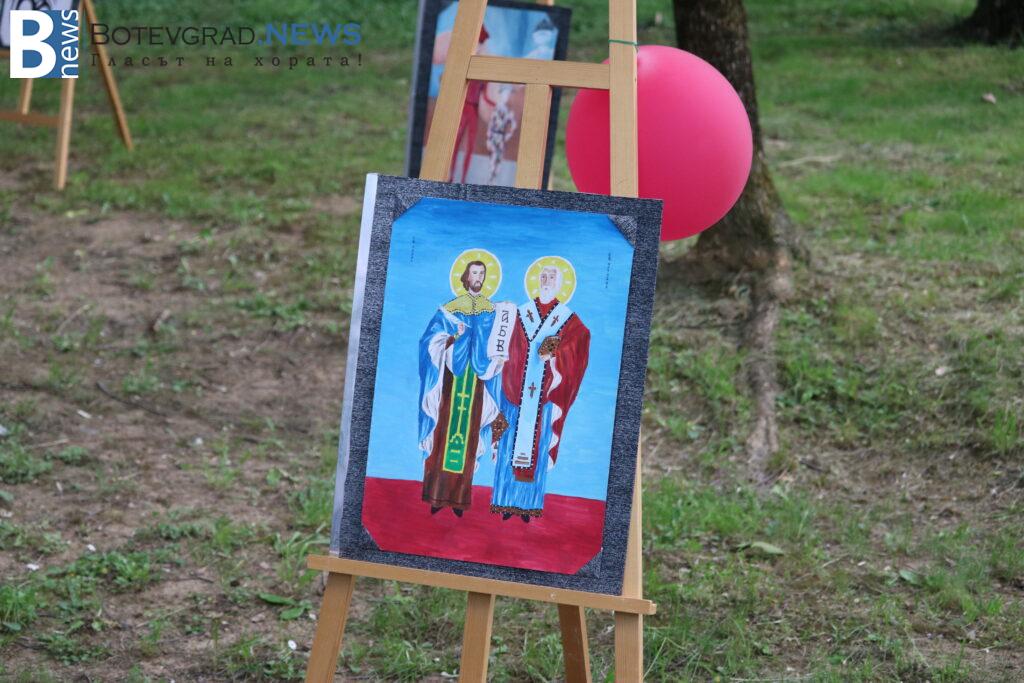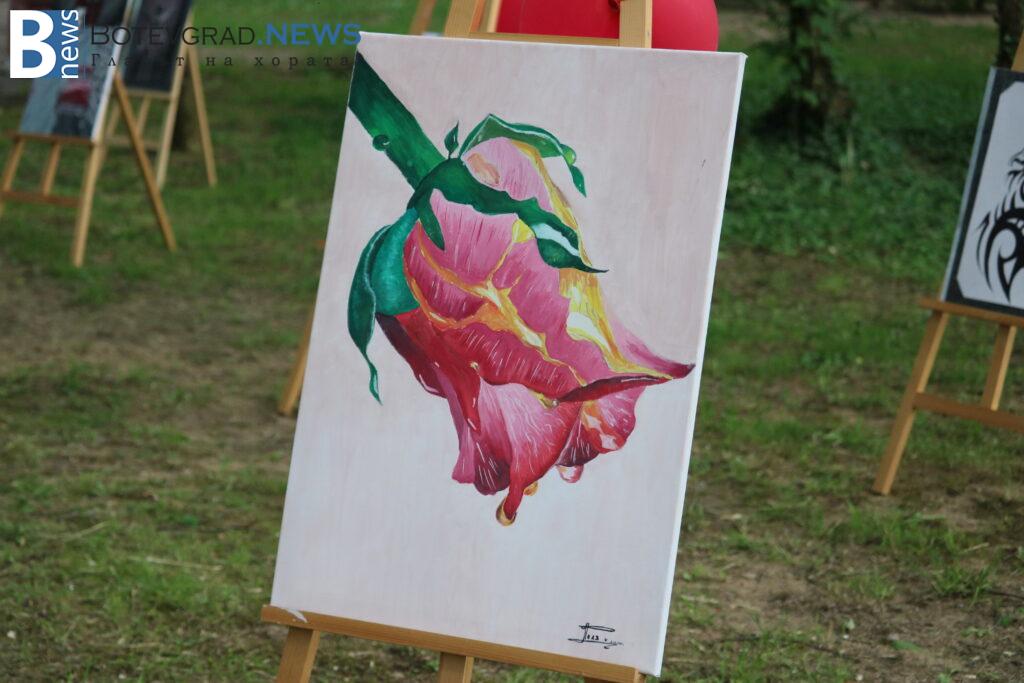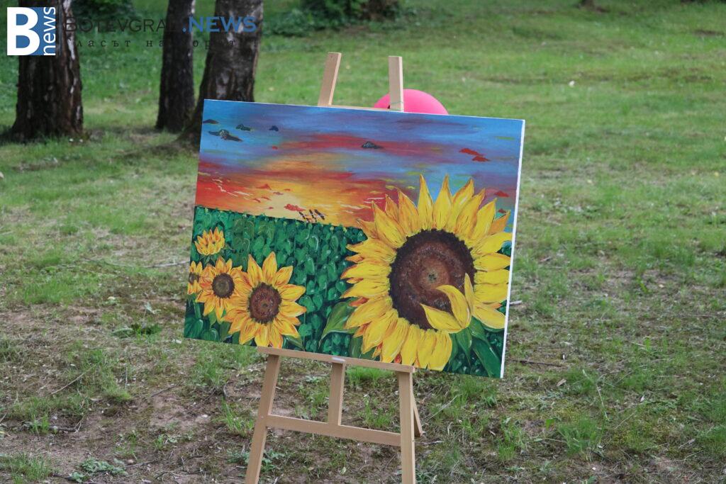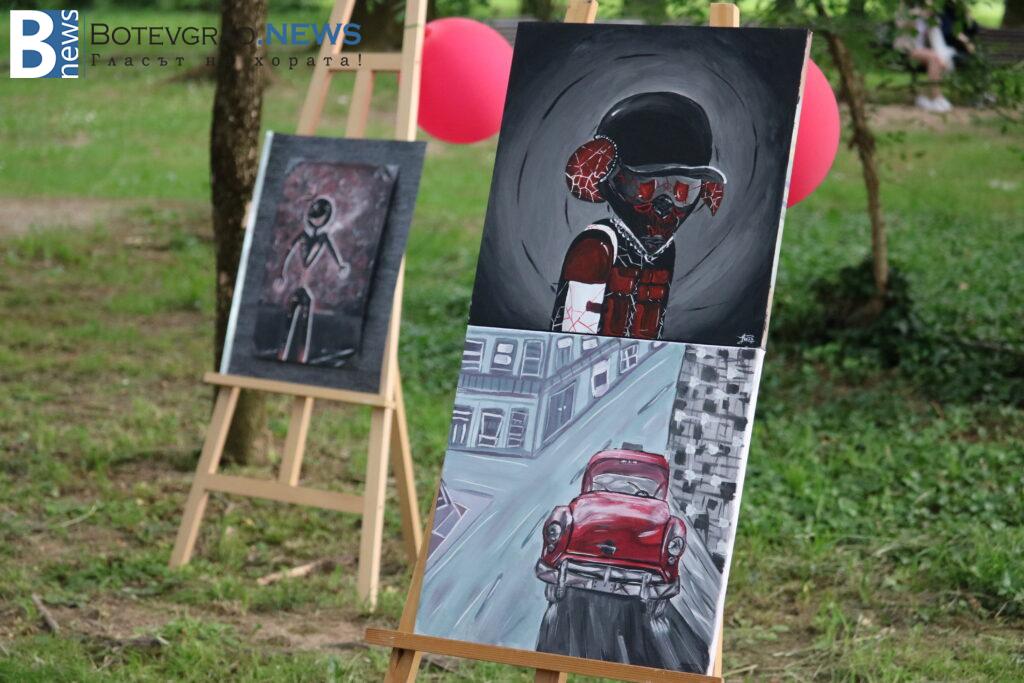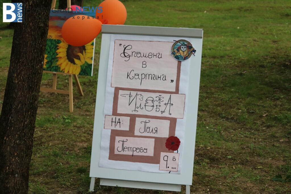 В двора на гимназията беше разположени изложбата „Спомени в картини“ на Поля Петрова, ученичка в 9В клас.