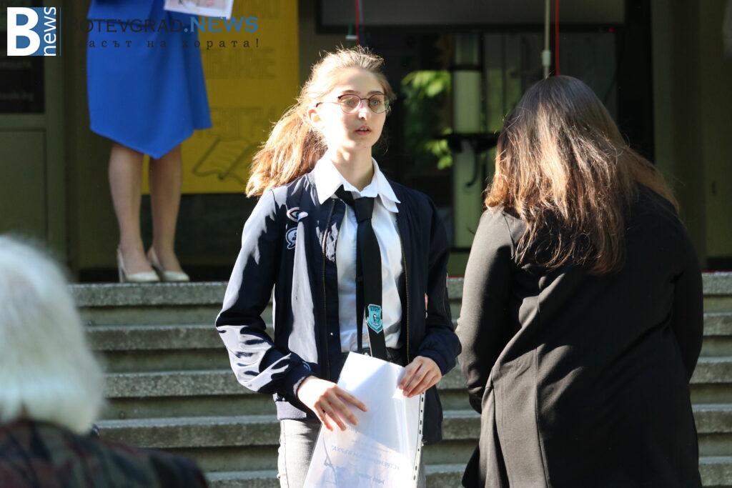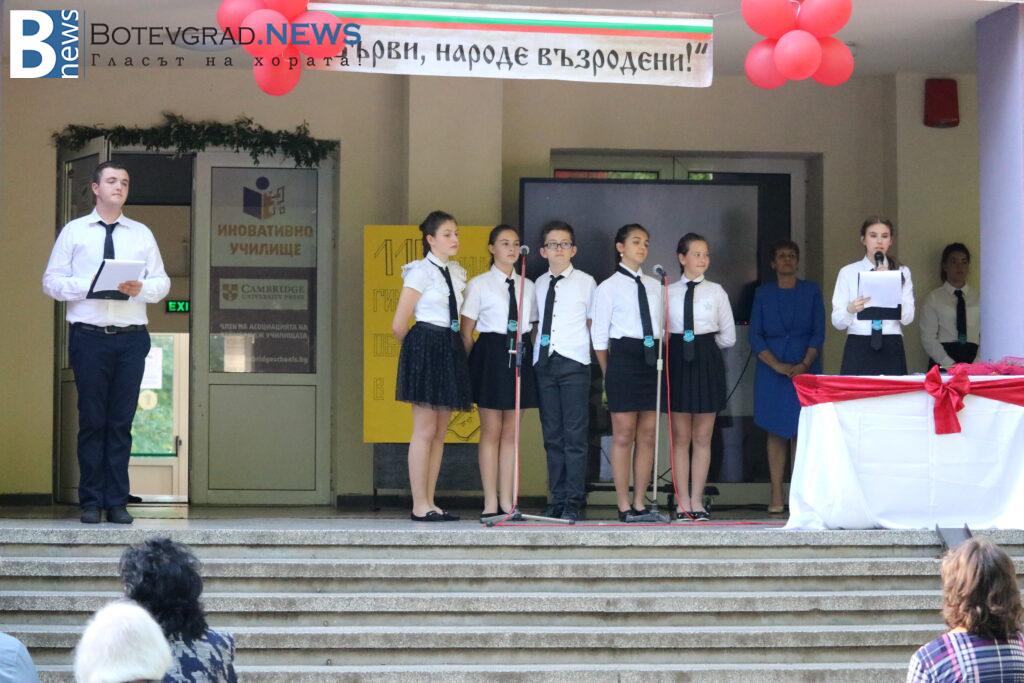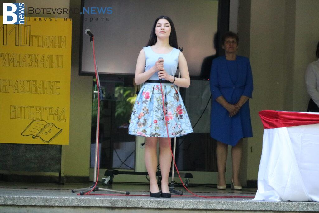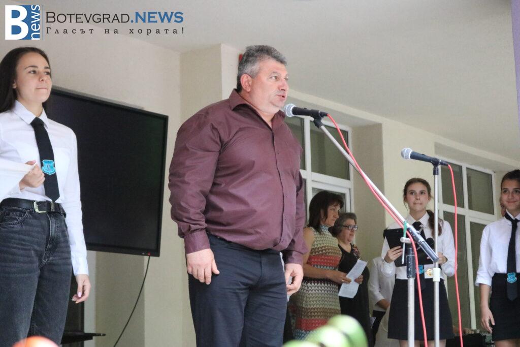 „24-ти май е израз на нашата идентичност, на творческия ни заряд, на силата, на духовността, крепила ни в трудни времена. Няма нищо по-красиво от високия дух и нищо по-силно от знанието. Нека не стихва жаждата ви за знания и духовно извисяване. Вие сте нашата надежда за изграждане на утрешния ден. Бъдете здрави, силни, упорити и уверени в собствените си възможности, любознателни и последователни. Вие сте нашето бъдеще за утрешния ден. Съхранявайте и предавайте традициите на предците ни. Бъдете непримирими в стремежите и чисти в делата си.“, с тези думи се обърна към гимназистите директорът на гимназията Даниела Колева с пожелание да бъде запазен пламъкът на съзиданието и обичта към знания.