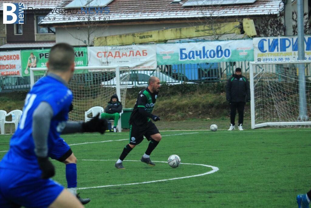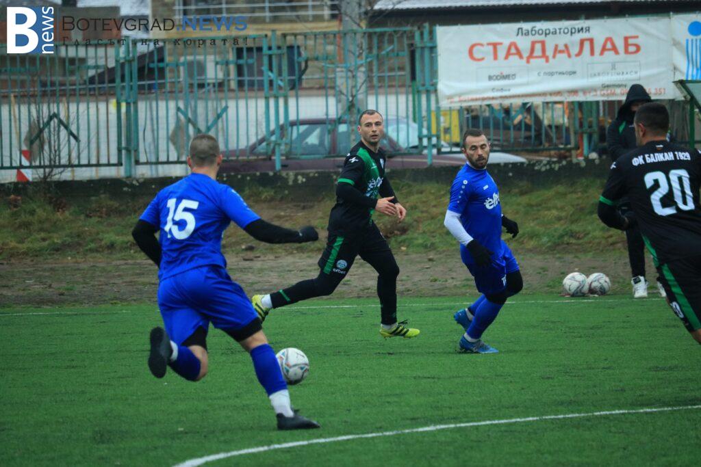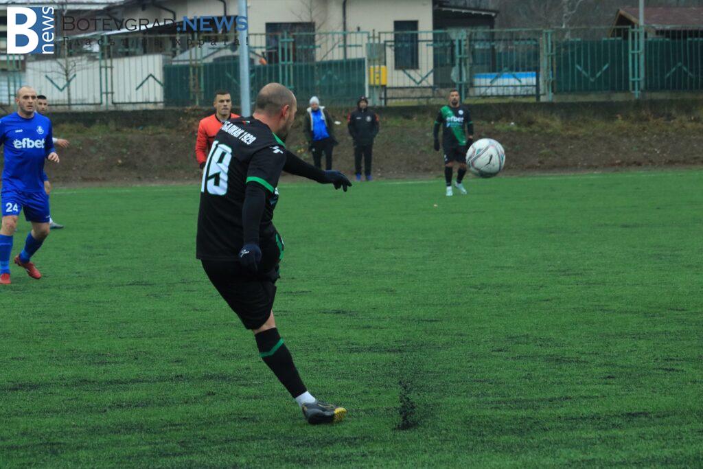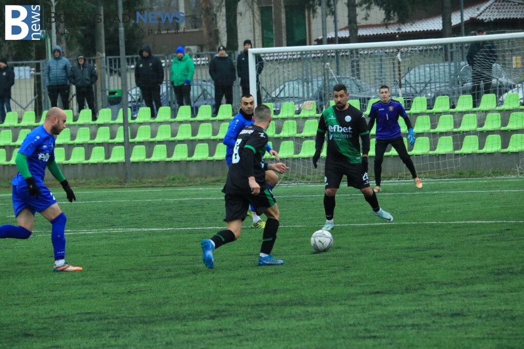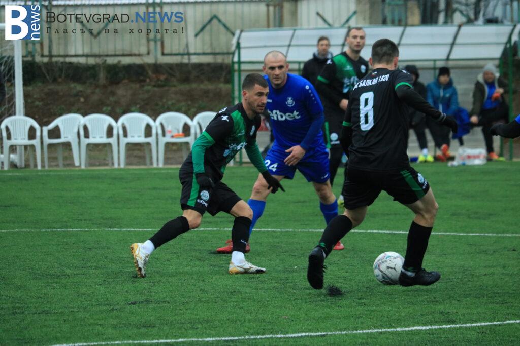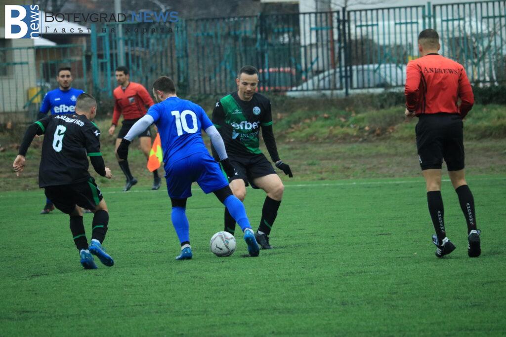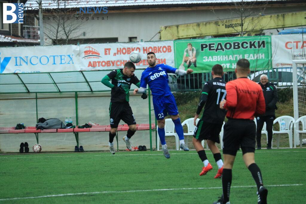 Александър Соколов откри необезпокояван с удар от разстояние. Домакините обаче изравниха още в следващата атака чрез Павел Петков, който реализира красиво попадение. Към края на полувремето футболистите на бившия играч на Балкан Николай Цветков -Демона пак поведоха след като при удар вратарят изби, но след поредица от рикушети Валдемар Асенов довкара топката в мрежата. През втората част се игра предимно пред вратата на гостите, но Бонев, Атанасов и Миков не успяваха да вкарат. В самия край на мача Виктор Гицов центрира и Калоян Бонев оформи крайното 2:2.