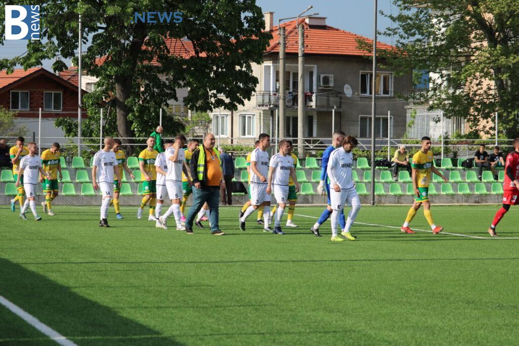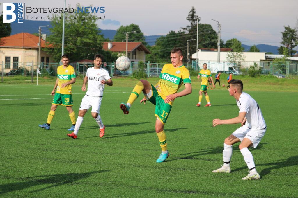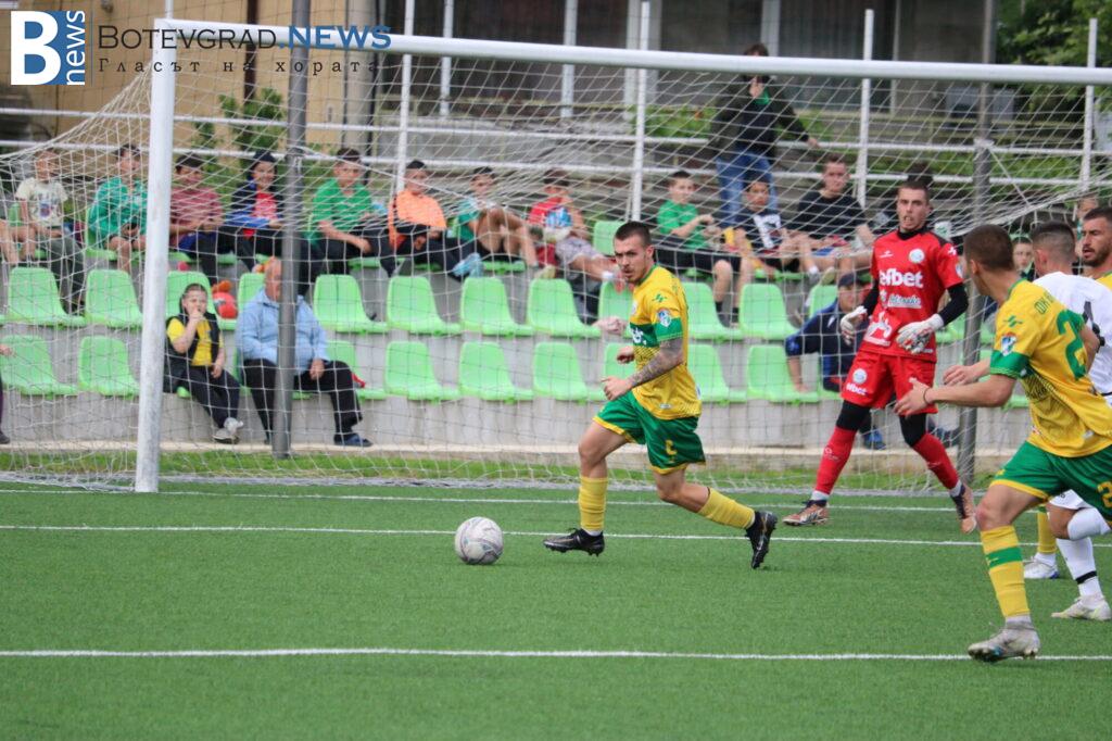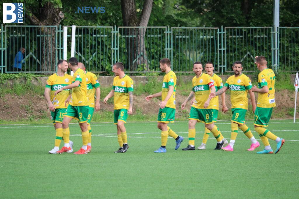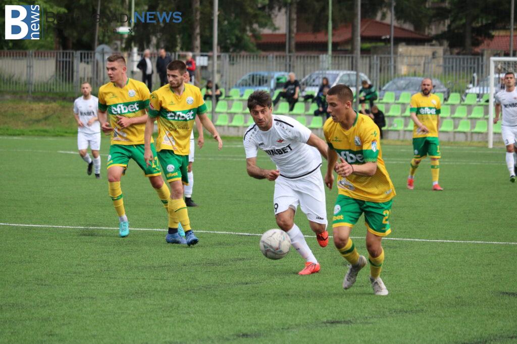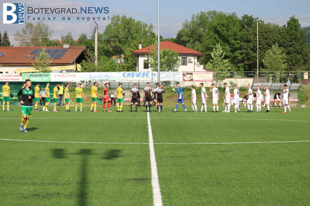Футболистите на Иван Редовски поведоха след отлично изпълнен пряк свободен удар, дело на Павел Петков. Много бързо, обаче гостите от Симитли стигнаха до равенство след гол от близко разстояние. В 34-та минута “зелените” отново излязоха напред в резултата след гол на Александър Асенов. Ветеранът Владислав Златинов от Симитли изравни след гол с глава.