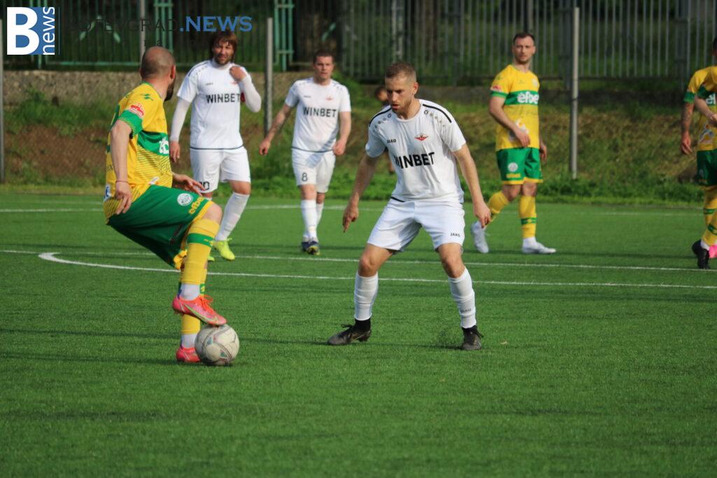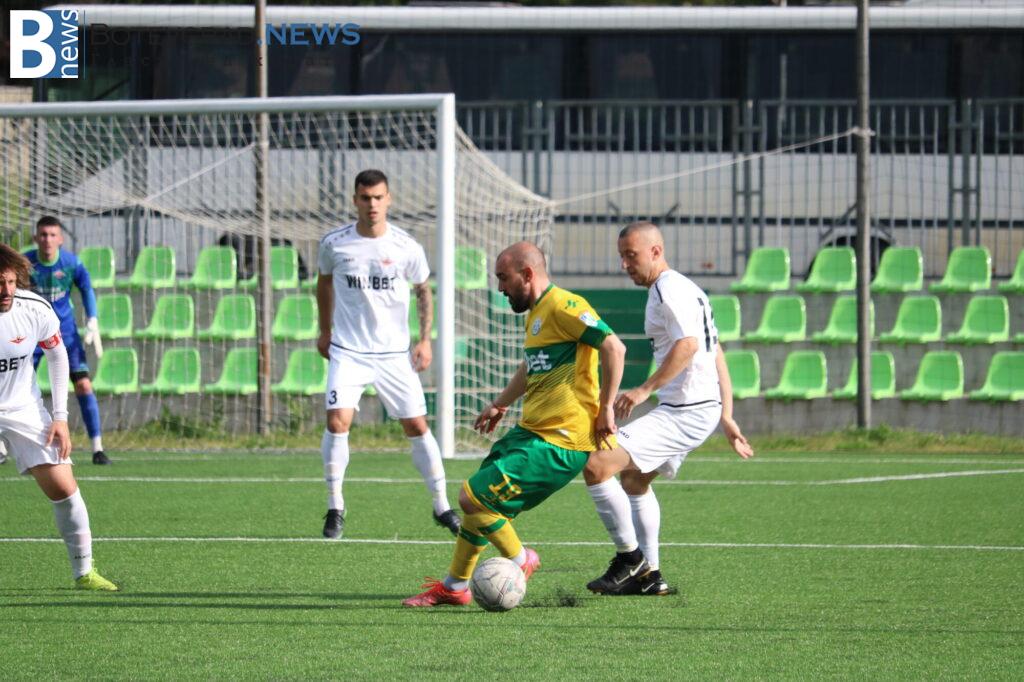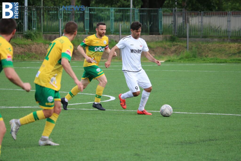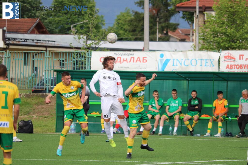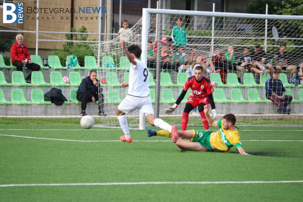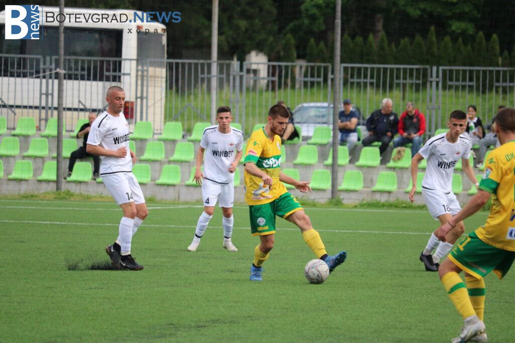 Футболистите на Иван Редовски поведоха след отлично изпълнен пряк свободен удар, дело на Павел Петков. Много бързо, обаче гостите от Симитли стигнаха до равенство след гол от близко разстояние. В 34-та минута “зелените” отново излязоха напред в резултата след гол на Александър Асенов. Ветеранът Владислав Златинов от Симитли изравни след гол с глава.