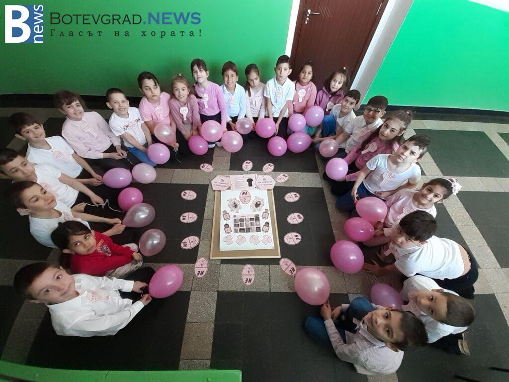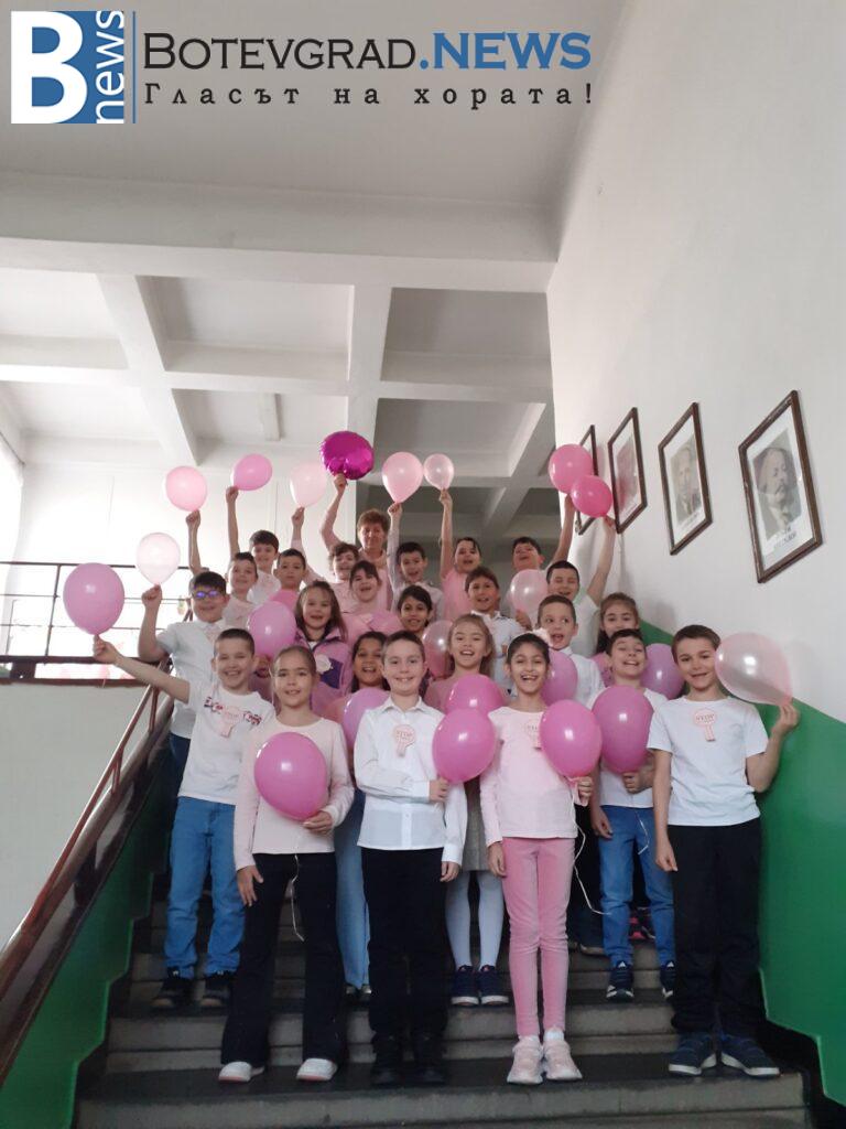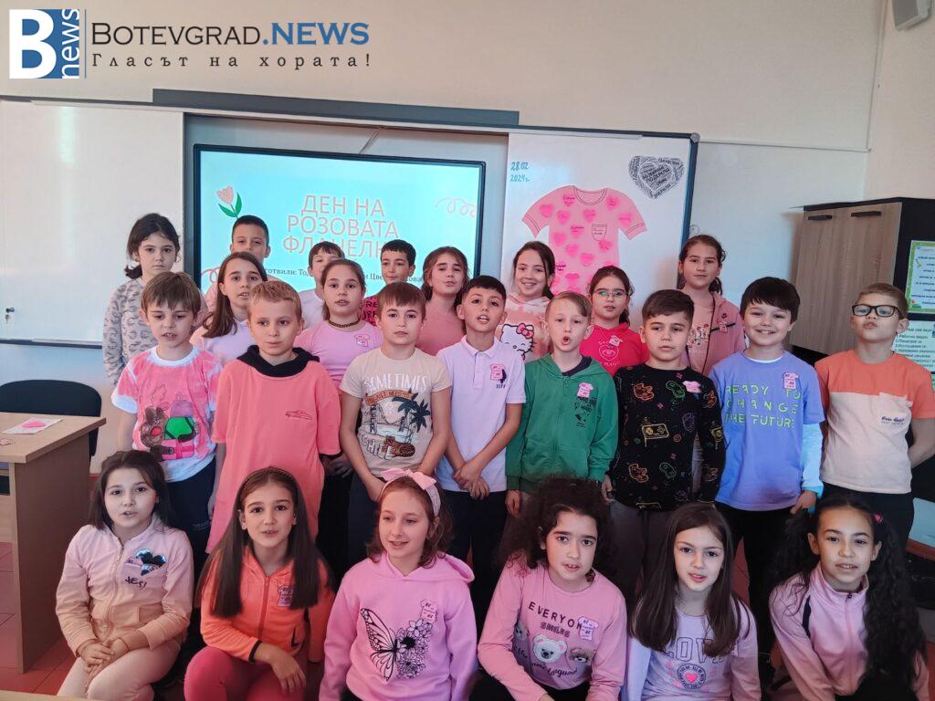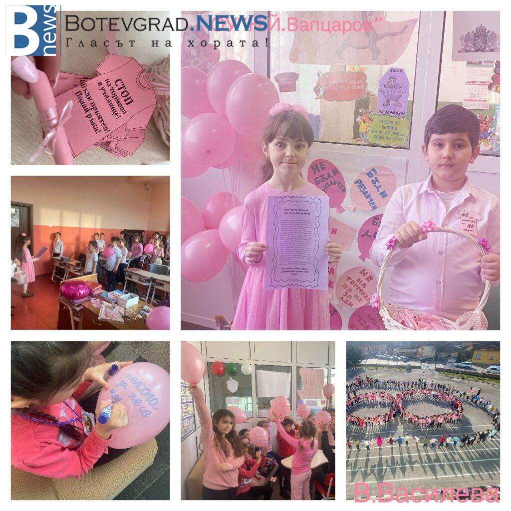 Учениците от ОУ „Никола Й. Вапцаров“ в Ботевград отбелязаха деня с различни инициативи и мероприятия. През седмицата изработиха красиви табла на тема „Не на тормоза в училище“ и „Не на кибертормоза“, проявиха творчество и креативна екипна работа. Всеки клас изработи свое табло за класната стая. Учениците от начален етап писаха послания на балони, подредиха се на двора в знак на съпричастност, а в паралелките, ученици от втори клас разказаха за идеята на розовата фланелка. Ученици от прогимназиален етап подготвиха презентации, които бяха представени пред класовете под формата на дискусия и четене на верижка.