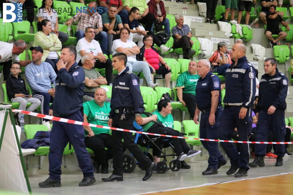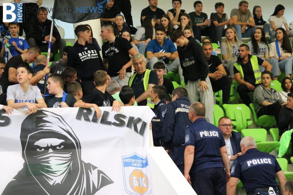 Две минути след началото на заключителния период мачът за съвсем кратко бе прекъснат след напрежение по трибуните заради хвърлена бутилка на терена от гостуващия сектор, а скоро след това дойде и полиция. Междувременно отборът на Любомир Киров поддържаше крехък аванс, но две минути преди края равенството бе възстановено – 67:67. Последва обаче и предупреждение, че залата ще бъде изпразнена, ако феновете продължат да светят с лазерчета в очите на играчите, след като преди това неведнъж имаше забележки за това.