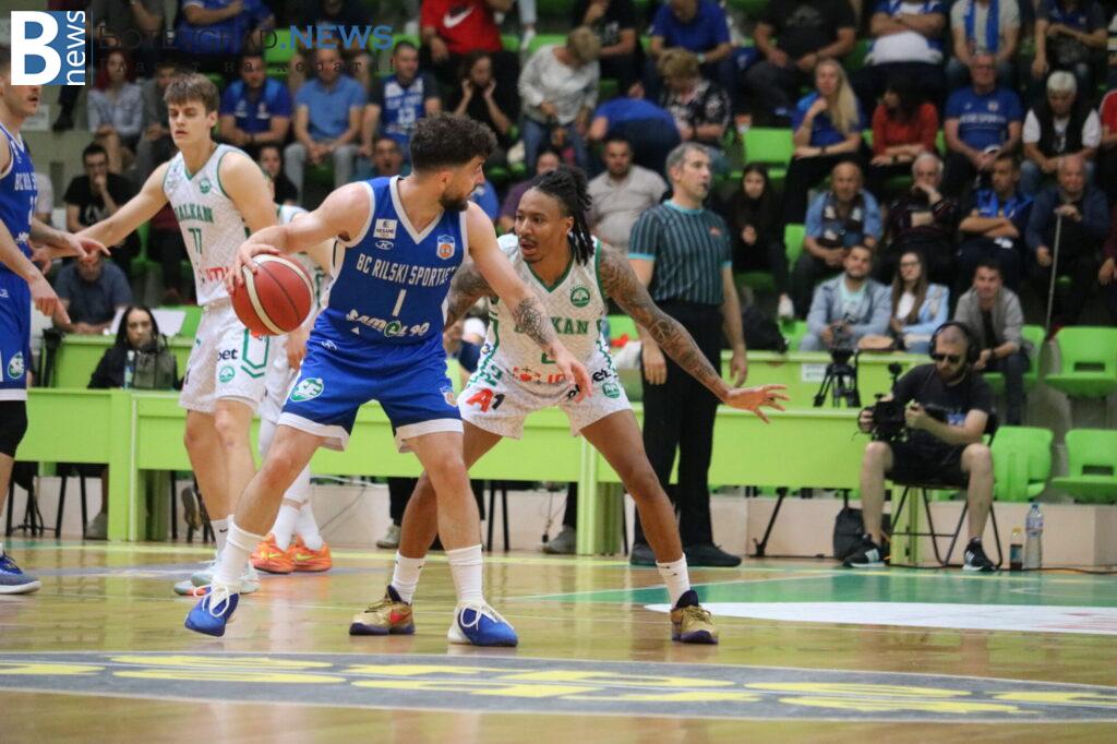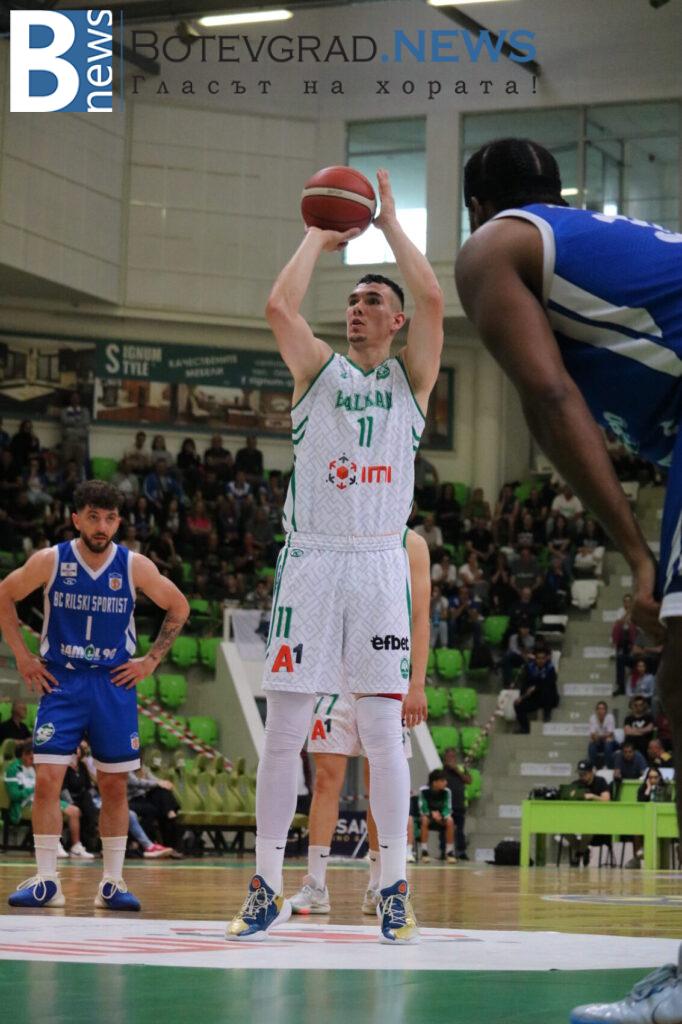 Рилски спортист вкара повече точки под коша през първото полувреме, но така и не успя да се разпише от далечно разстояние. След паузата тимът оправи мерника си и след три почти последователни тройки поведе с 56:55. Седем поредни точки на Хана и Диксън доведоха до нов обрат, а решителната четвърт започна при минимално предимство за гостите – 58:57, за които Скот и Лоусън вече висяха с четири нарушения.