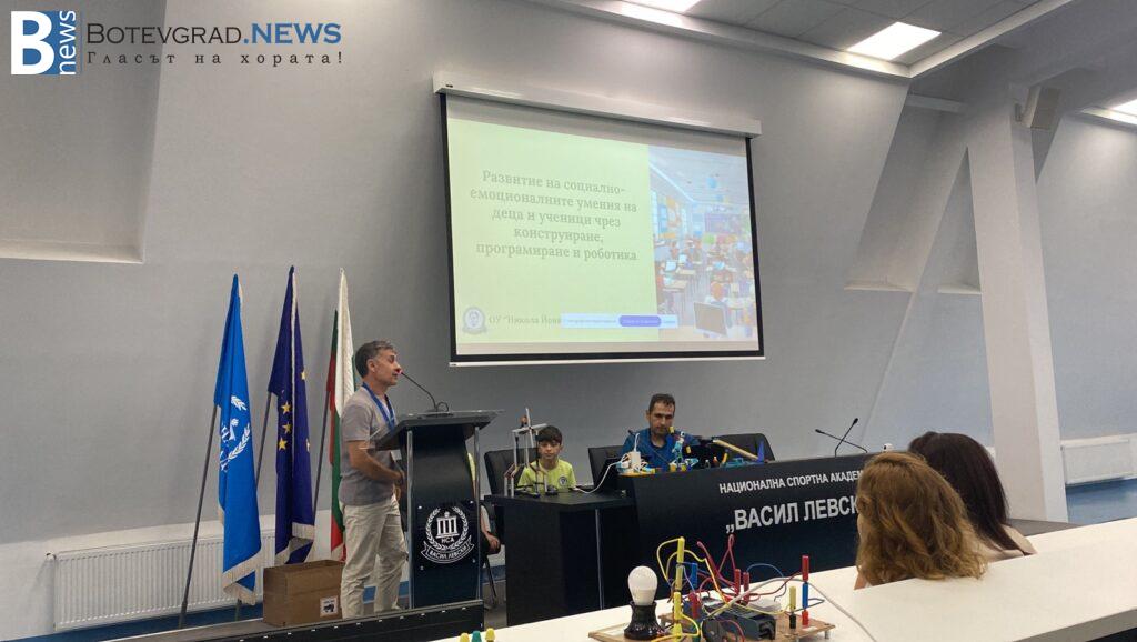 Темата на презентацията на нашия екип беше „Развитие на социално-емоционалните умения на деца и ученици чрез конструиране, програмиране и роботика“.