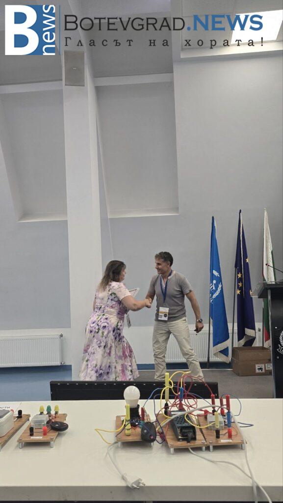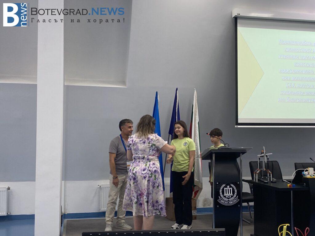 След отлично представената демонстрация на различни механични и роботизирани модели, учениците и техния ръководител получиха своите сертификати от г-жа Росица Иванова, началник на РУО София – област.