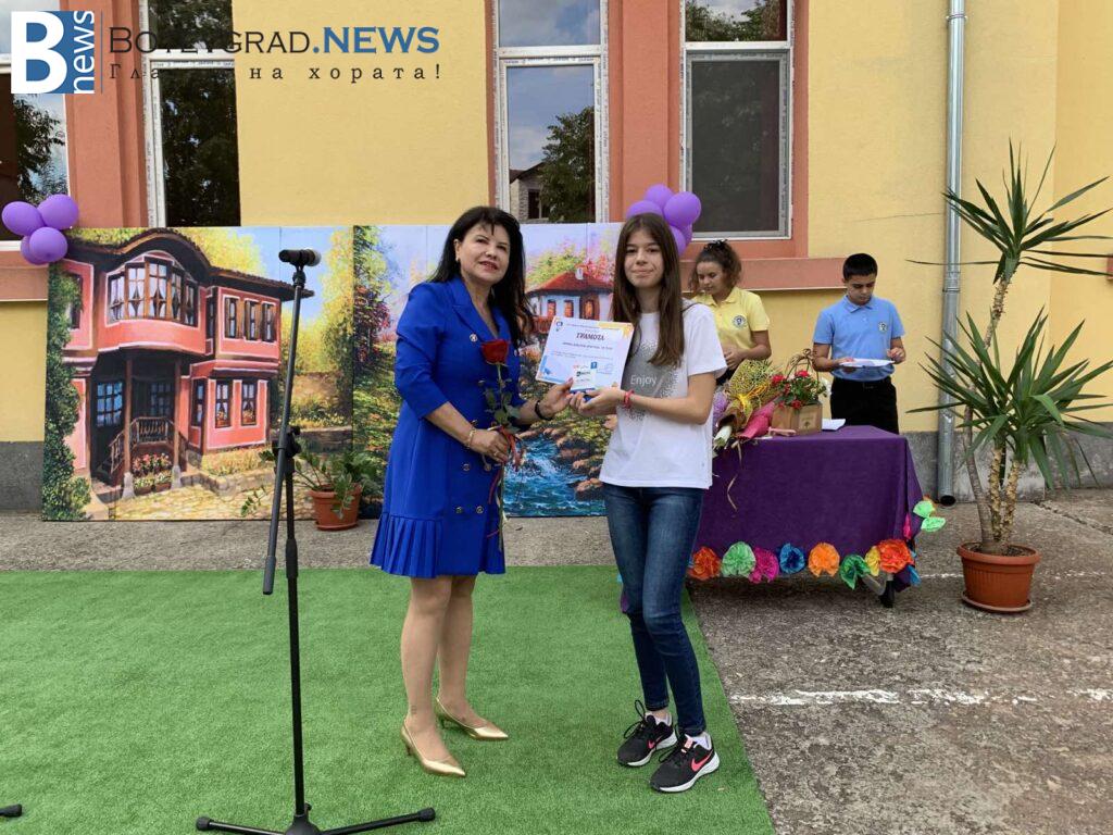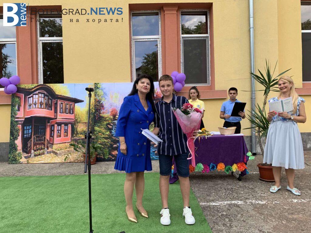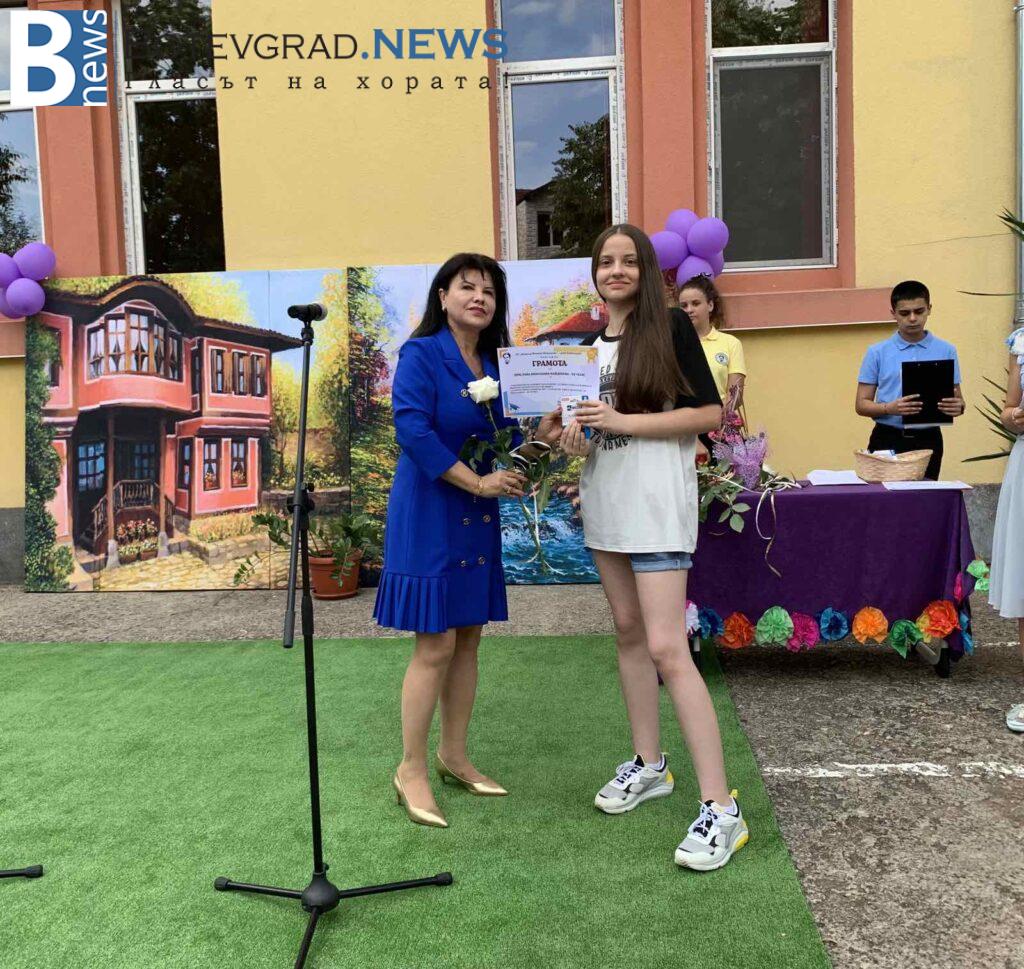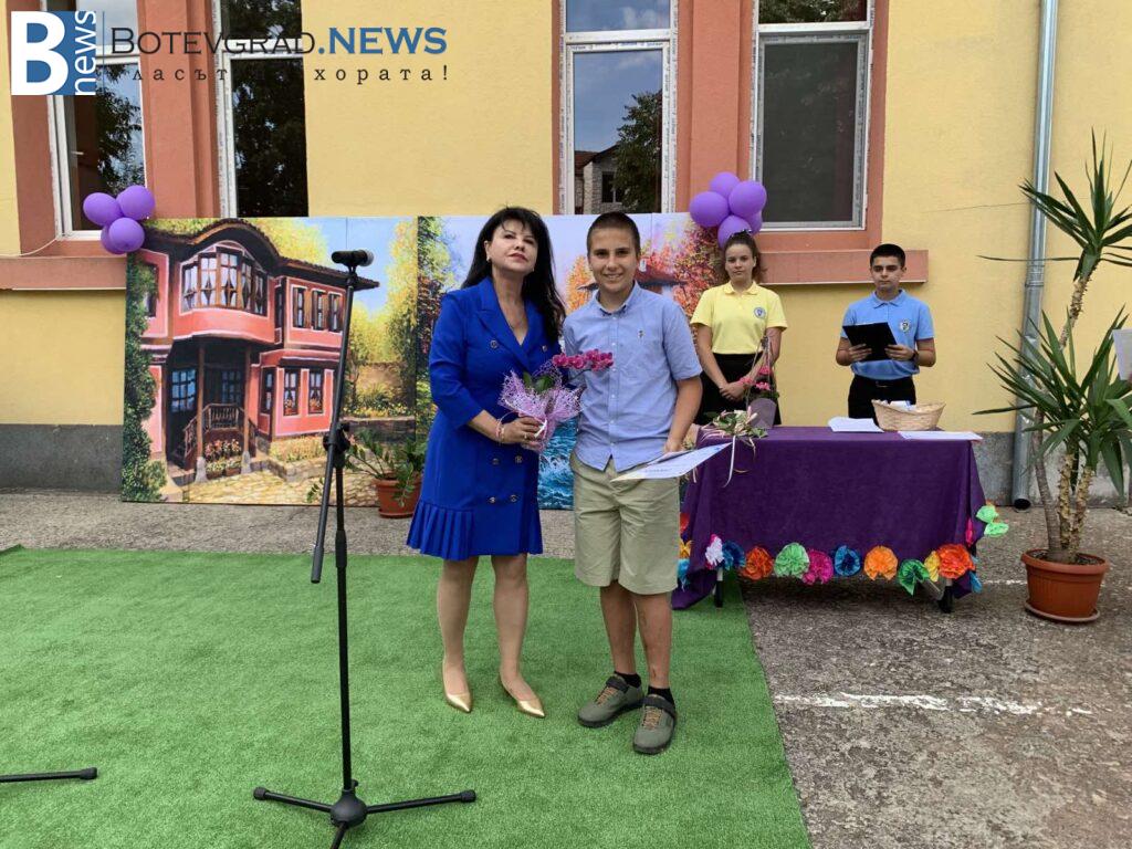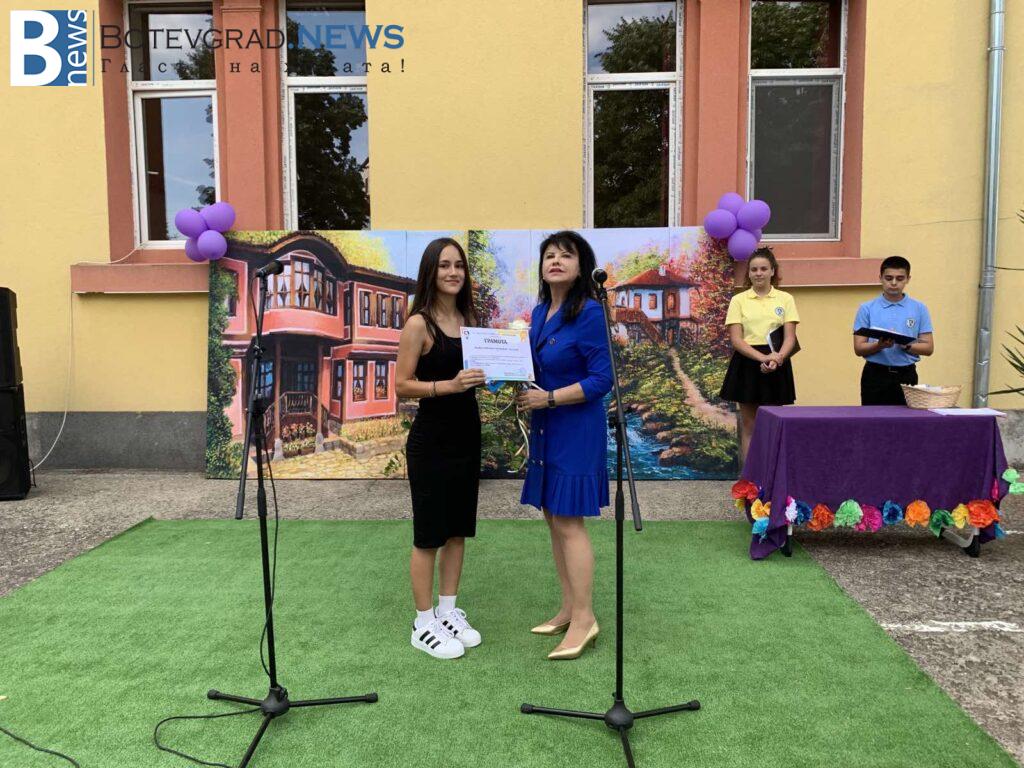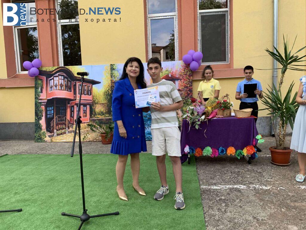 Г-жа Кочкова връчи грамота за отлична подготовка на учениците за НВО и постигнат висок резултат на учителите г-жа Бисерка Петкова – главен учител и преподавател по математика и на г-жа Ванеса Христова – учител по БЕЛ. Последва връчване на грамоти на ученици за постигнат отличен успех и висок резултат на двете матури, както следва: