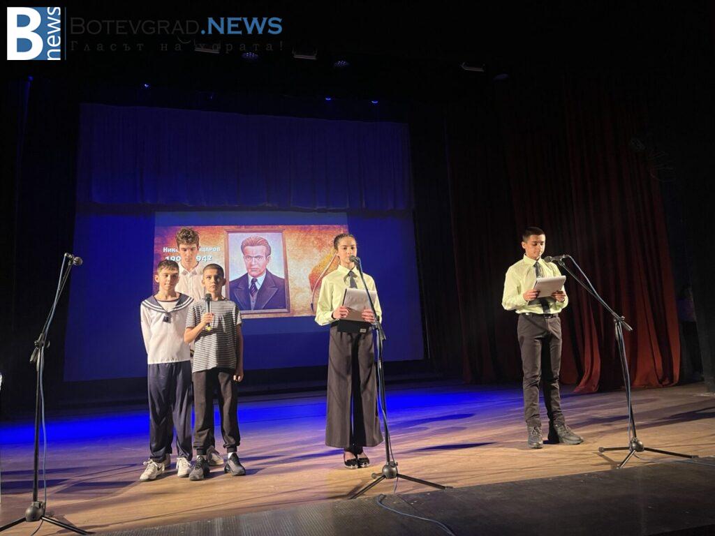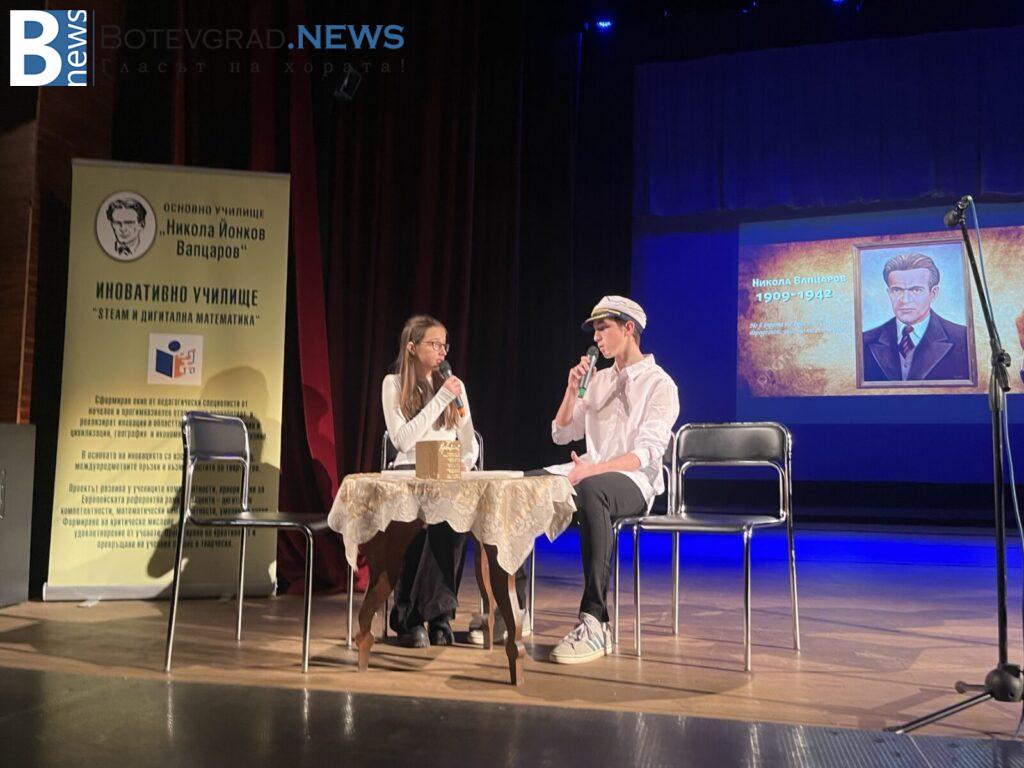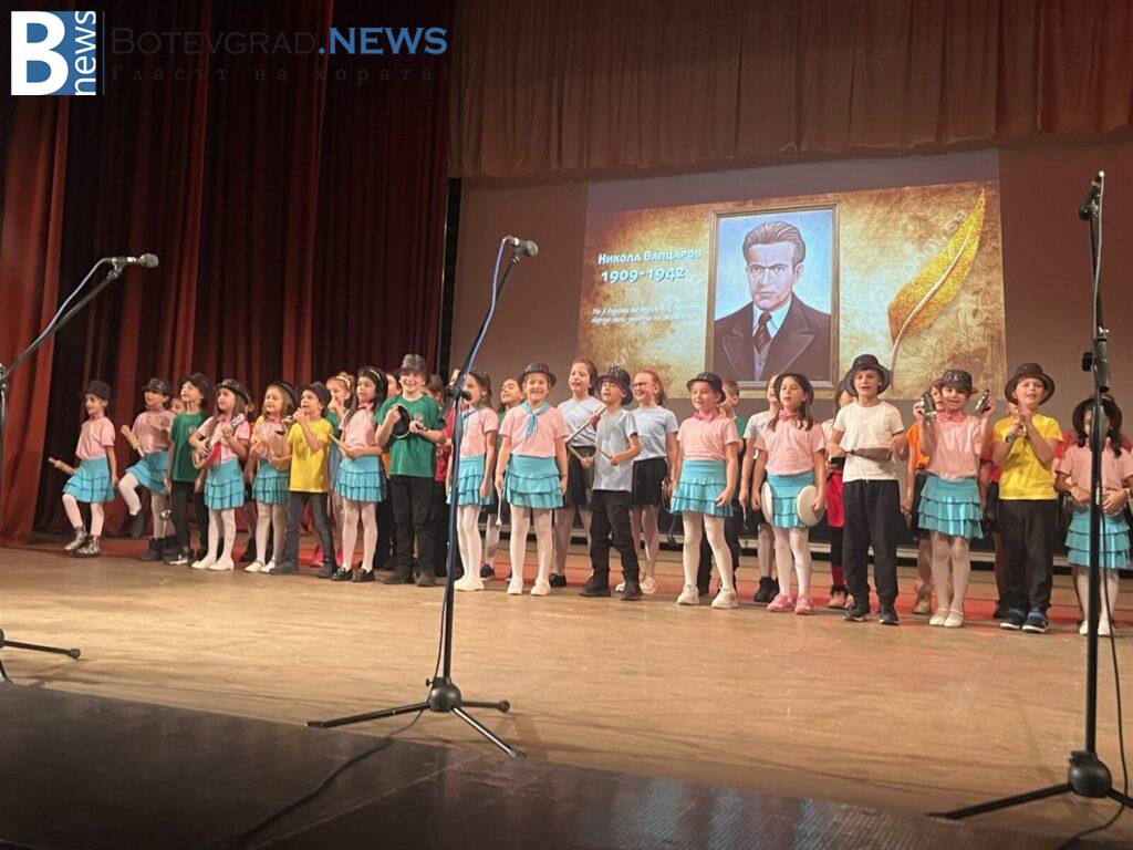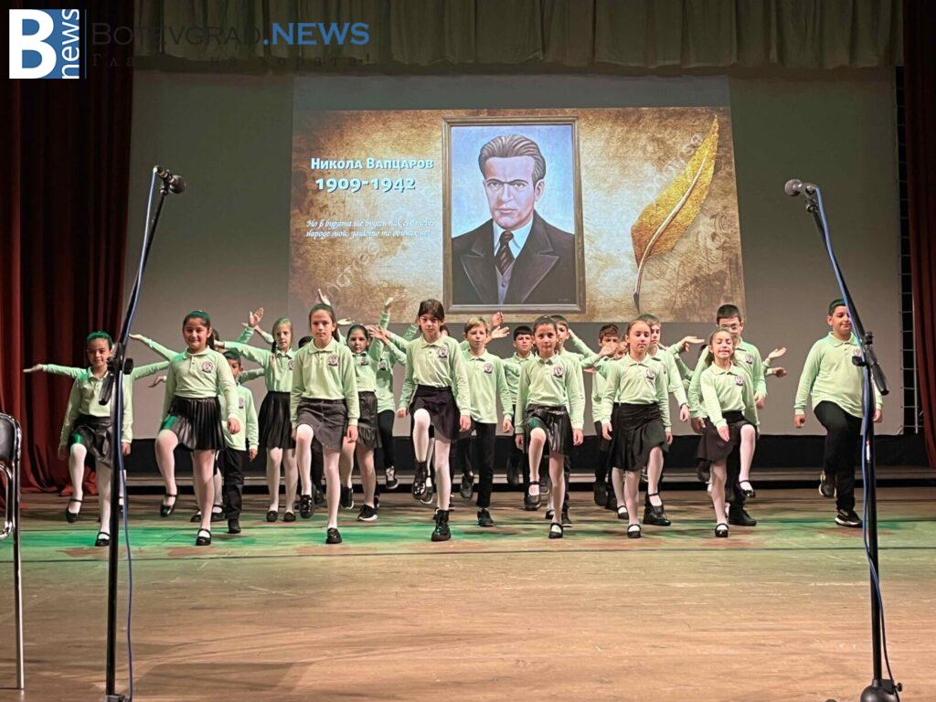 Едно различно тържество, с новаторски поглед към живота и делото на Никола Вапцаров поднесоха ученици, участващи в клубовете по Занимания по интереси и групите по НП „Заедно в изкуствата и спорта“. За пръв път на сцената се представи училищният оркестър, с ръководител Константин Гайдарски. Поздрав за всички отправиха спортистите от клуб по таекуондо, мажоретки и детски състав за народни танци.