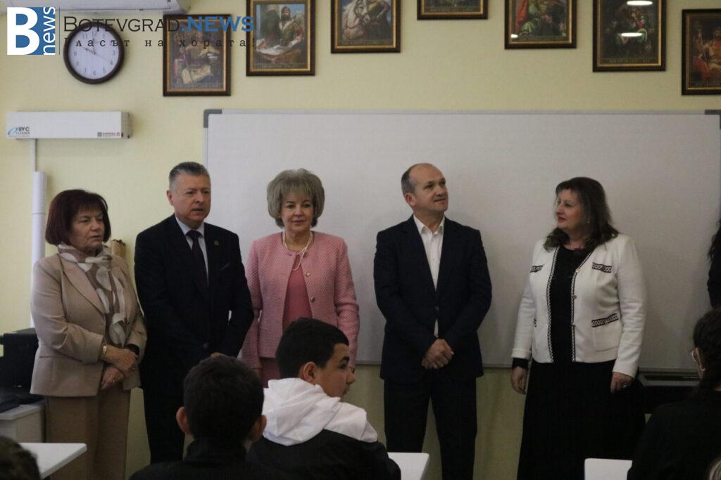 С „Добре дошли“ приветства всички гости директорът на учебното заведение, г-н Петко Петков. Той изрази своето задоволство от откриването на новия кабинет. „Безкрайно сме радостни, че успяхме да създадем този кабинет по Национална програма „Осигуряване на съвременна, сигурна и достъпна образователна среда“ , по модул „Съвременна среда за обучение по хуманитарни науки“. Петков припомни, че през миналата година бе открит кабинет по Български език и литература. „За нас това един вдъхновяващ кабинет, той има за цел да подобри качеството на обучение по история и география, да ангажира вниманието и засили интереса на учениците.“, добави директорът.