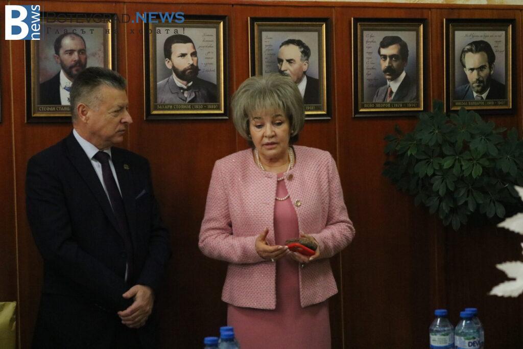 Пенка Иванова от Министерството на образованието дари книги и карти на училището.