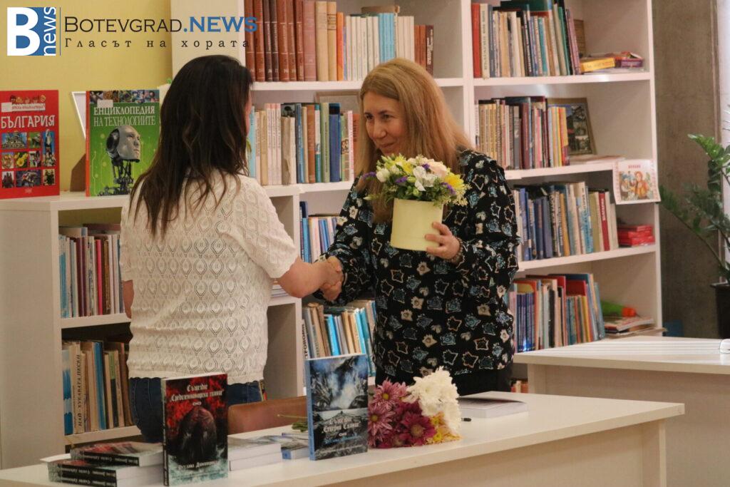 Авторката беше тържествено поздравена и от домакините – Общинска читалищна библиотека „Иван Вазов“, които ѝ връчиха цвете в знак на благодарност за вдъхновяващото литературно преживяване, което подари на всички присъстващи.