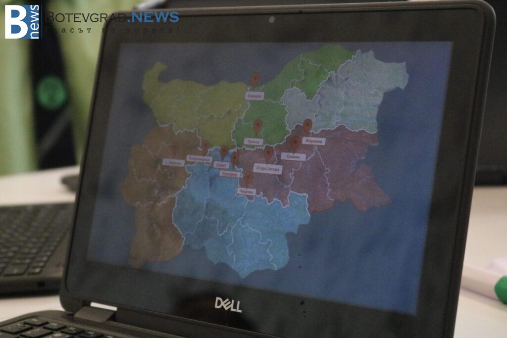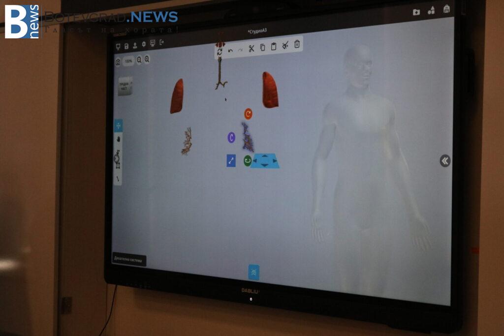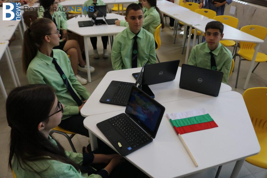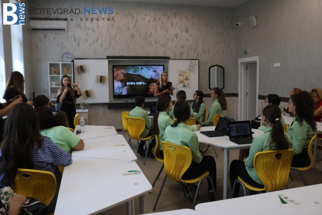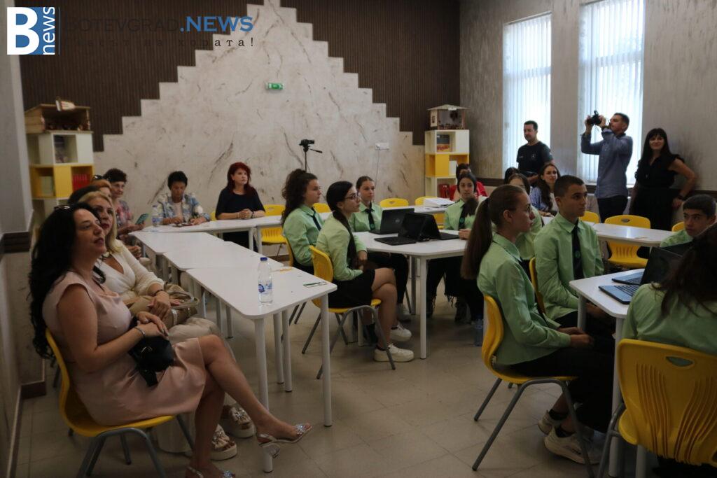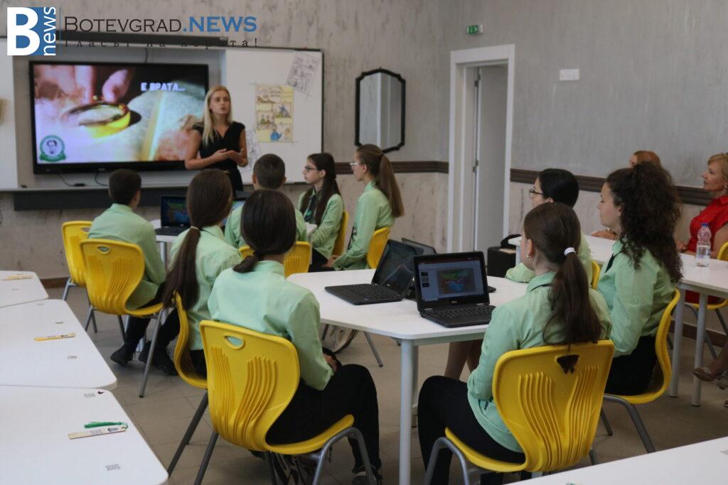 В кабинета по хуманитарни науки учениците представиха интегрирана дейност, обединяваща литература и КМИТ. Демонстрацията започна с музикално предизвикателство на електрическо пиано, изпълнено от ученик, който въведе гостите в темата. След това учениците се отправиха на виртуално пътешествие из литературната карта на България, проследявайки градовете, свързани с живота и делото на видни български писатели.