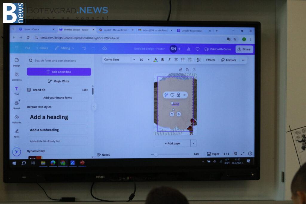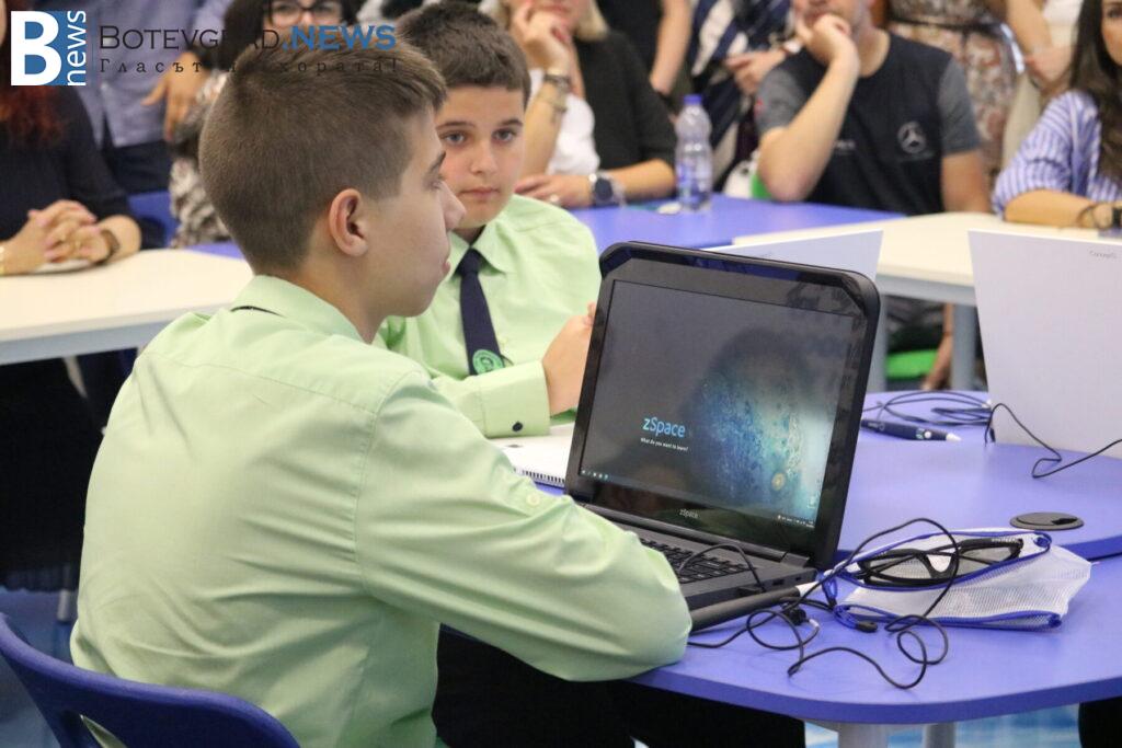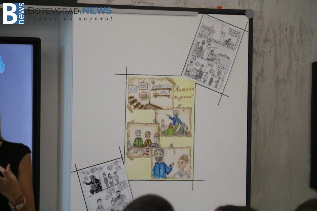 С помощта на изкуствен интелект учениците създадоха визуални образи на литературни герои, вдъхновени от изучаваните произведения. Със създадените изображения проектираха корици на книги в платформата Canva. Финалният акцент бе кратка драматизация по стихотворението „Христо Ботев“ от Никола Вапцаров, която трогна публиката и придаде силен емоционален заряд.