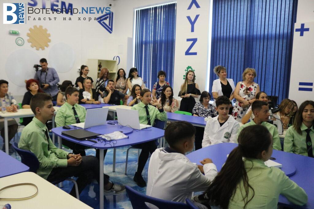 „Днешното тържествено събитие не е само за Вашето училище, то е събитие и за град Ботевград! Какво по-добро от това, в едно училище да продължава обновяването и модернизирането на средата“.Така започна своето обръщение зам. министър Лазарова към присъстващите ученици, учители и родители. По повод откриването на модерния хуманитарен кабинет зам. министърът заяви, че хуманитарните науки са тези, които дават една много добра база за широка философия и полезност за всички останали учебни предмети. Според г-жа Лзарова STEM кабинетите пък ще дадат отлична възможност за повишаване мотивацията на учениците и все повече да развиват своите умения и компетентности, полезни за тяхното развитие в живота им като цяло.