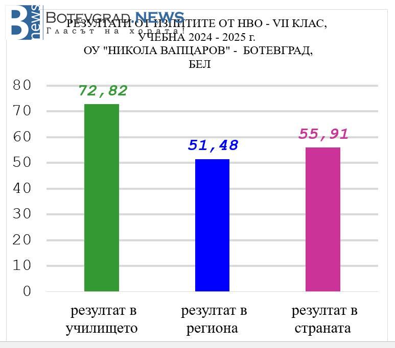 Успешно представяне на седмокласниците от ОУ „Никола Й. Вапцаров“ –Ботевград на Националното външно оценяване за учебната 2024/2025 година. Отличните резултати по БЕЛ и МАТЕМАТИКА са повод за заслужена гордост и признание на техните преподаватели:
