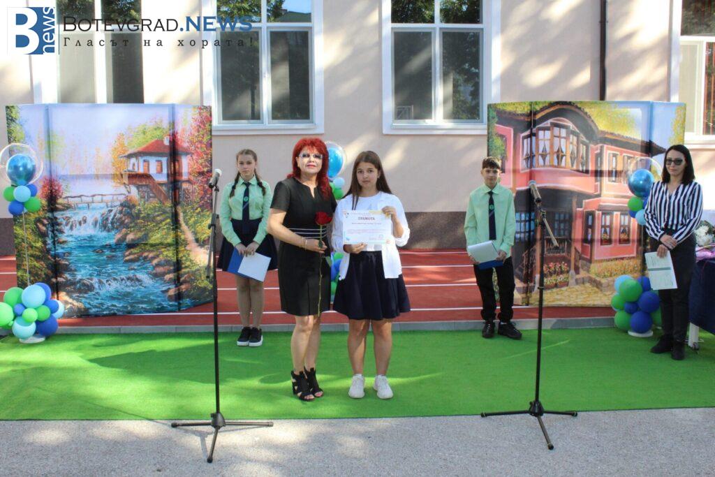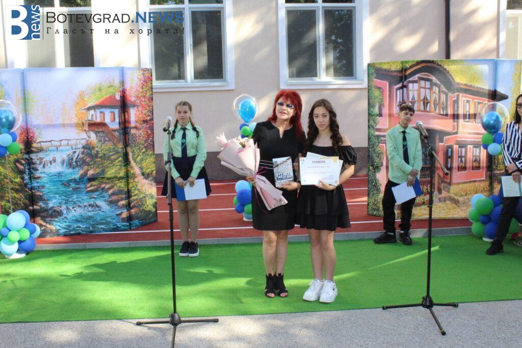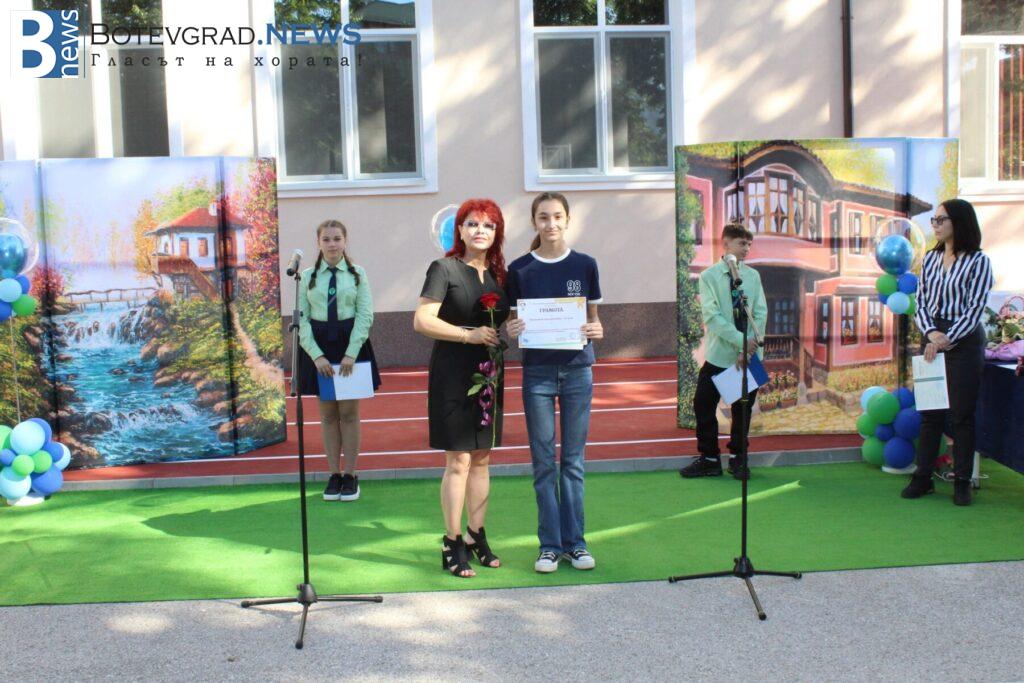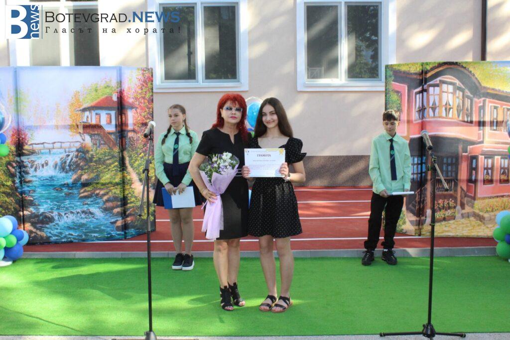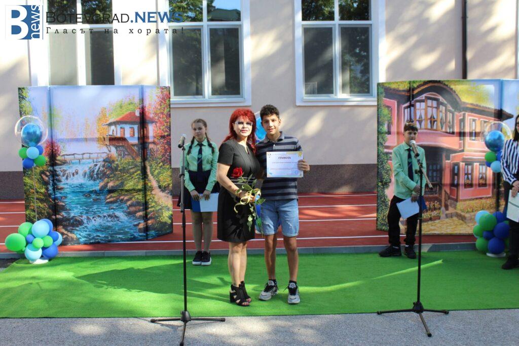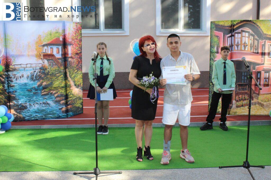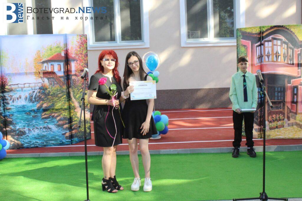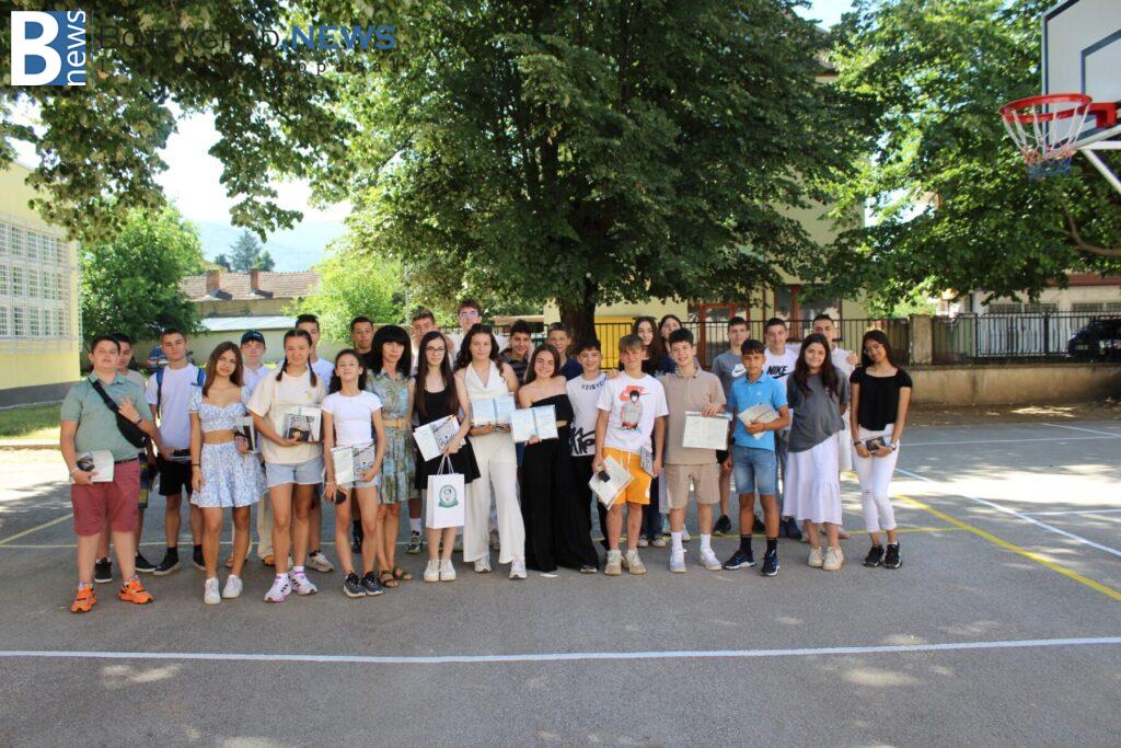 Последва връчване на грамоти на ученици за постигнат висок резултат на двете матури и отличен успех както следва: