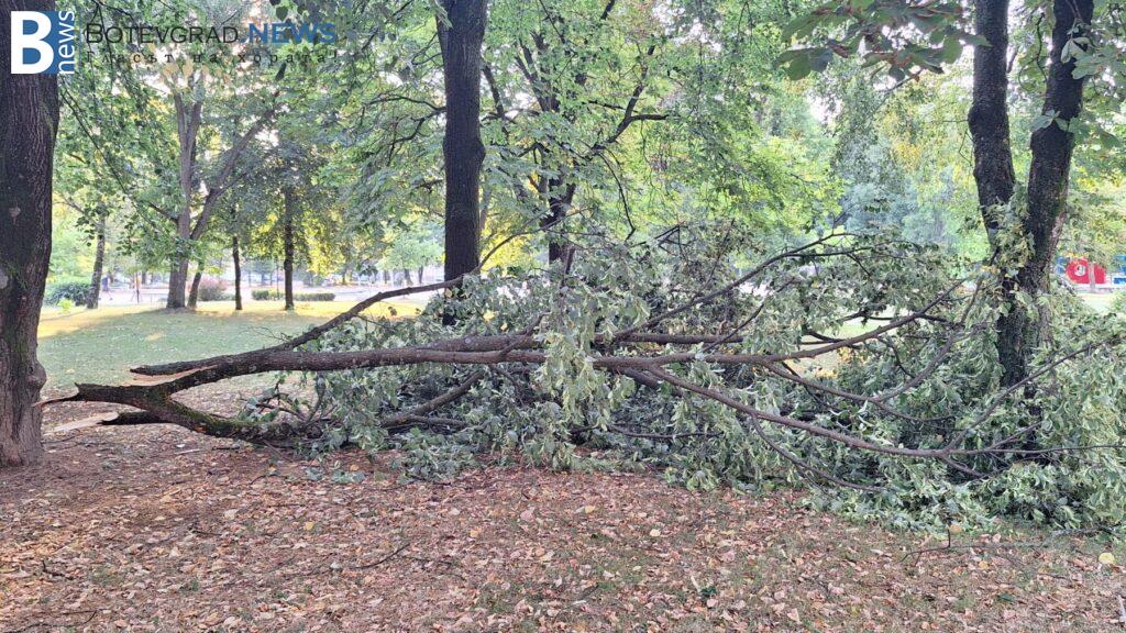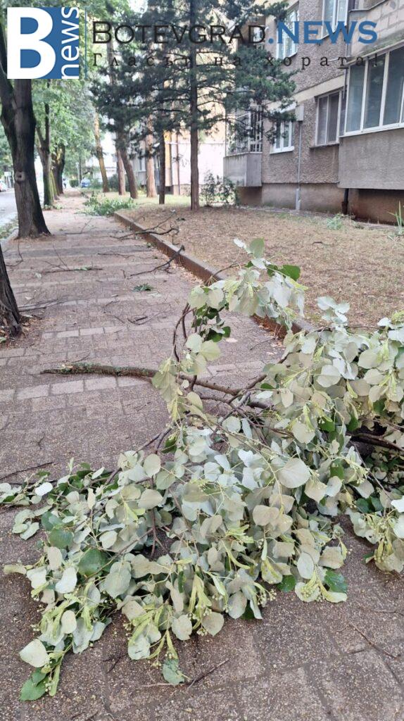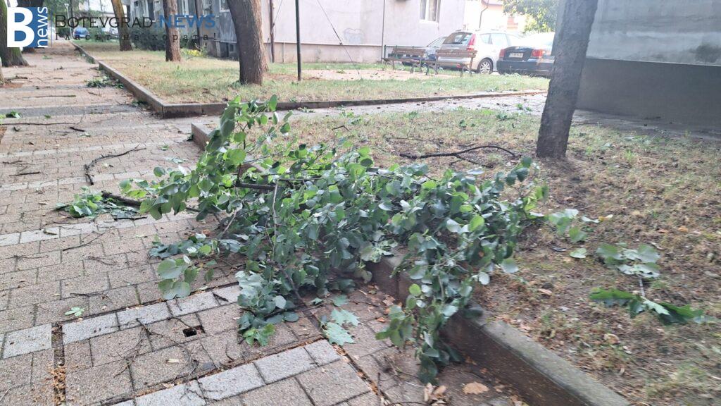 Силният вятър повали множество дървета както в централната градска част, така и в околните квартали. Някои от тях блокираха улици и тротоари.