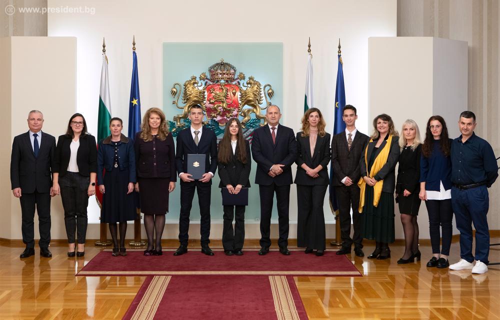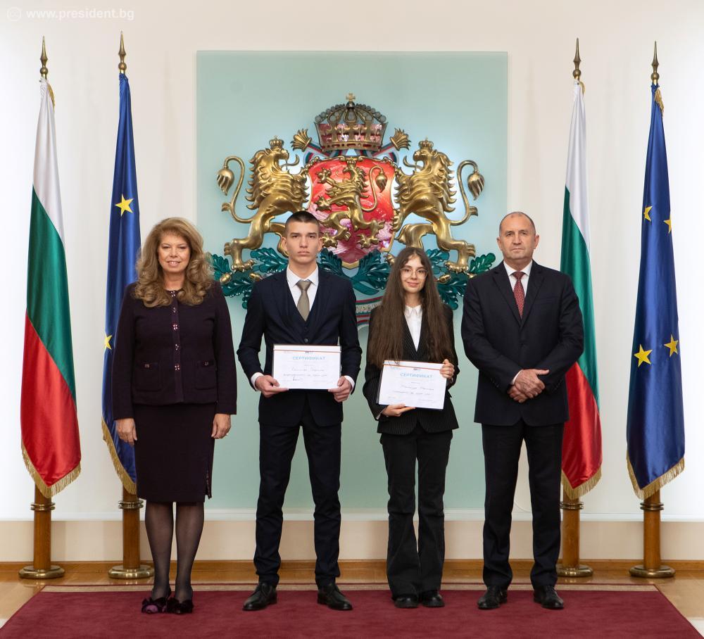 На тържествена церемония в Гербовата зала на Президентството, държавният глава Румен Радев и вицепрезидентът Илияна Йотова връчиха сертификати на двамата млади лидери и поздравиха всички участници в инициативата.