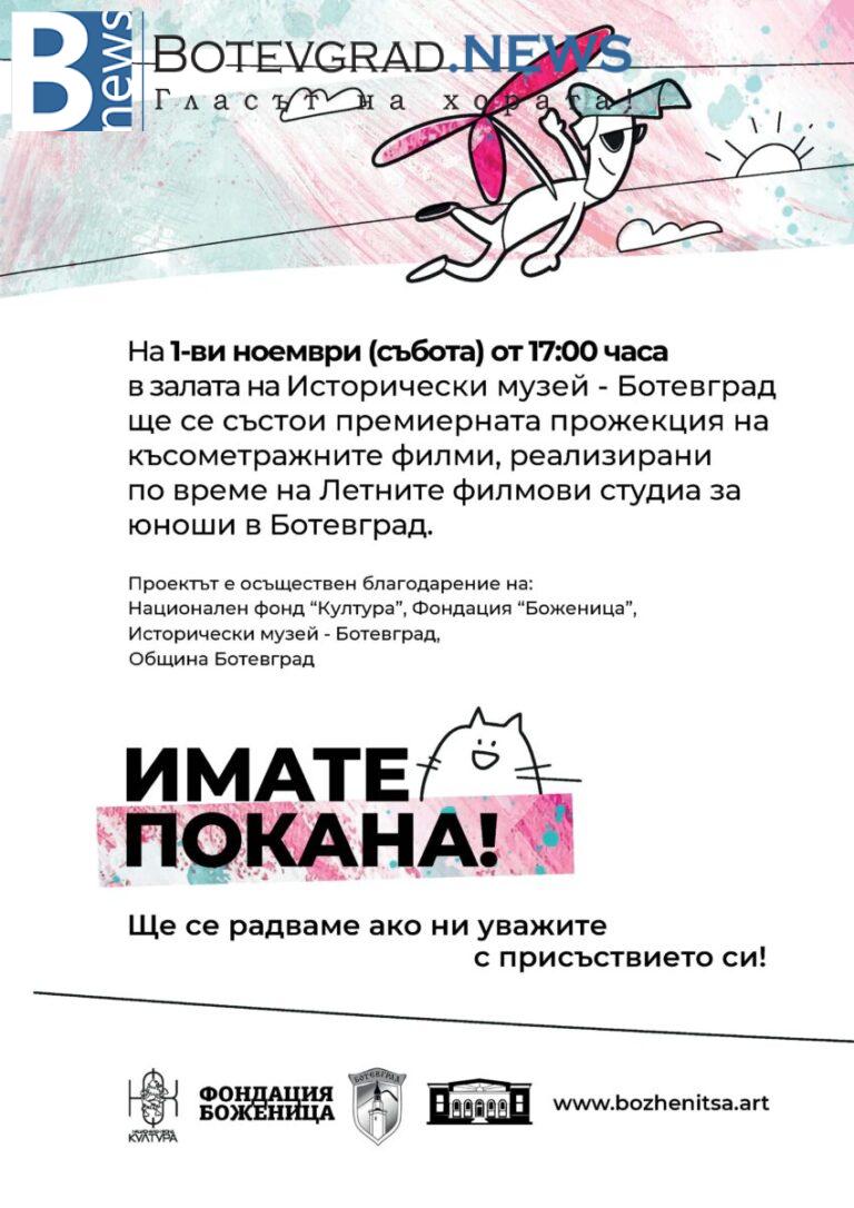 Премиерните прожекции на двата нови късометражни филма "ШЕСТИ ЕТАЖ" и "ЦАЙС", които бяха реализирани в рамките на две летни студиа...