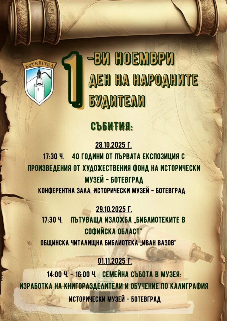 В навечерието на 1 ноември – Деня на народните будители, Община Ботевград Исторически музей – Ботевград и Общинска читалищна библиотека...