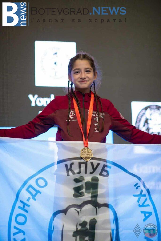Безапелационно Златина Йорданова отново е на върха. Много обещаващ талант. Тя спечели два златни медала и в двете дисциплини-форма и спаринг в категория 30 кг. при момичета 8-9 г. Злати  не даде никакъв шанс на опонентите си в тази категория и възраст и ясно показа,че е фаворит.