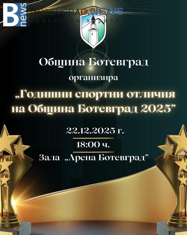 На 22 декември 2025 г. в Ботевград ще се състои тържествена церемония за връчване на годишните спортни отличия, която се провежда за втора поредна година и има за цел да отдаде заслужено признание на най-изявените спортисти и треньори от общината.
