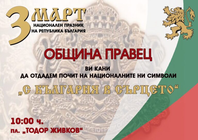 На 3 март – Националния празник на Република България, Община Правец кани жителите и гостите на града да се включат...