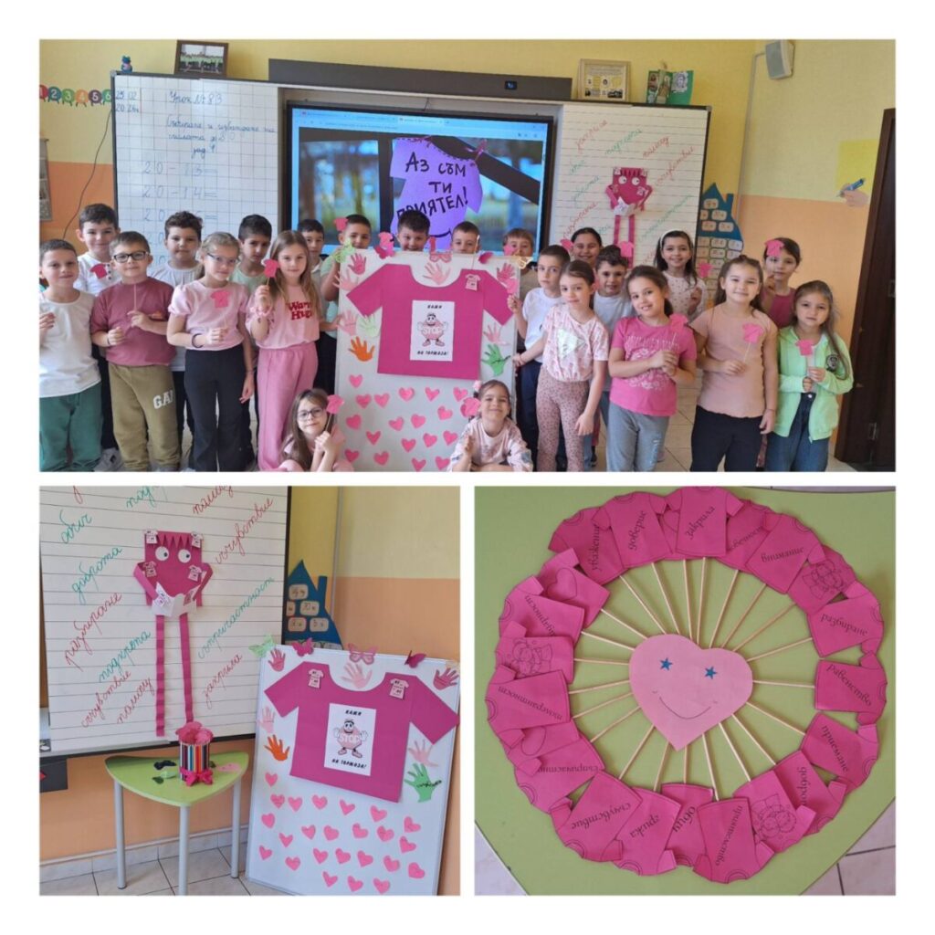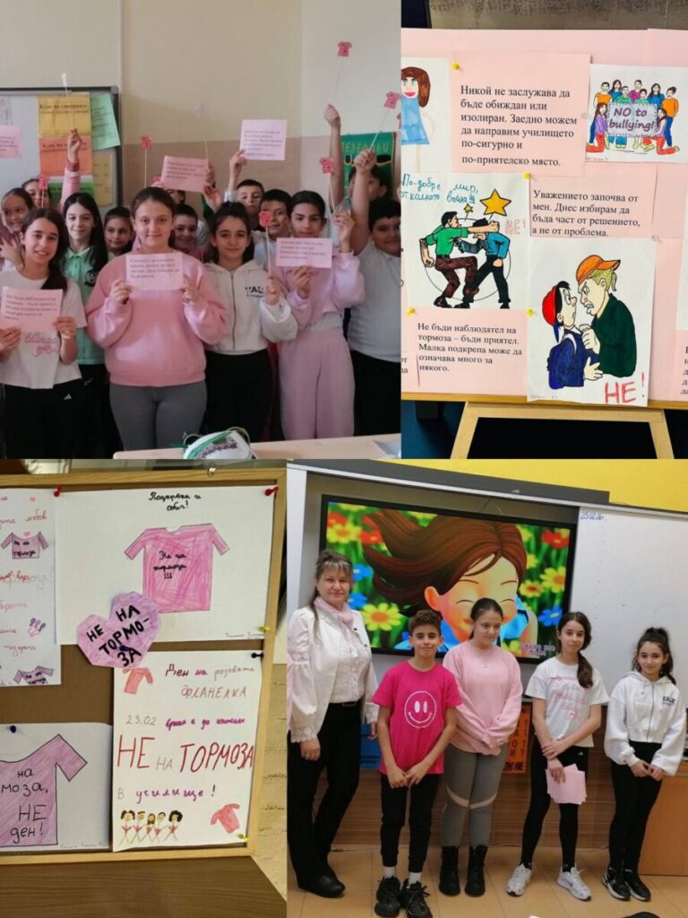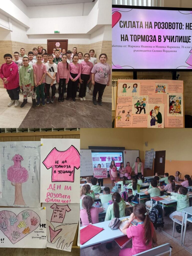 Учениците от начален и прогимназиален етап в ОУ „Н. Й. Вапцаров“ отбелязаха Деня на розовата фланелка с разнообразни инициативи, посветени на превенцията на тормоза и насърчаването на добротата в училищната среда.