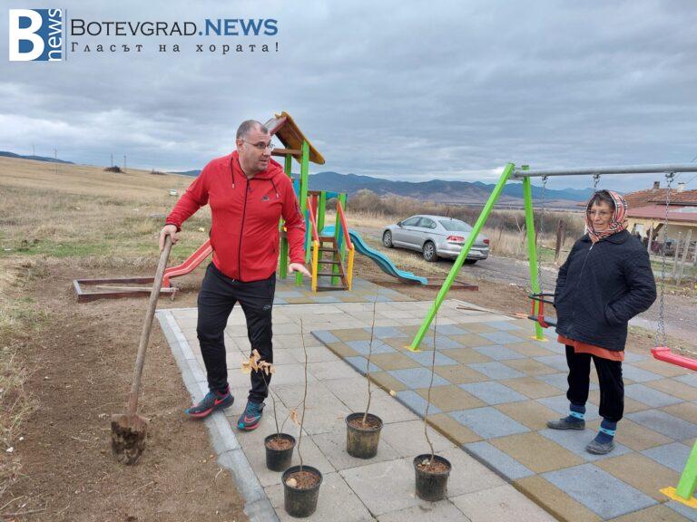 Около новоизградената детска площадка на ул. "Л.Каравелов" в село Литаково днес бяха засадени няколко фиданки от дървесните видове липа, Гинко...