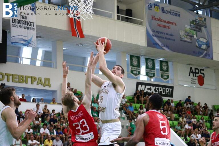 Българският национален отбор по баскетбол разгроми този на Норвегия с 91:69 в предпоследния си мач от предварителните европейски квалификации за Евробаскет...